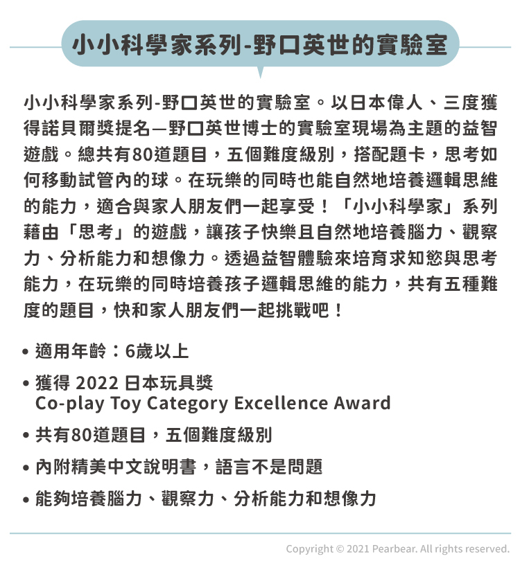Hanayama 小小科學家系列-野口英世的實驗室