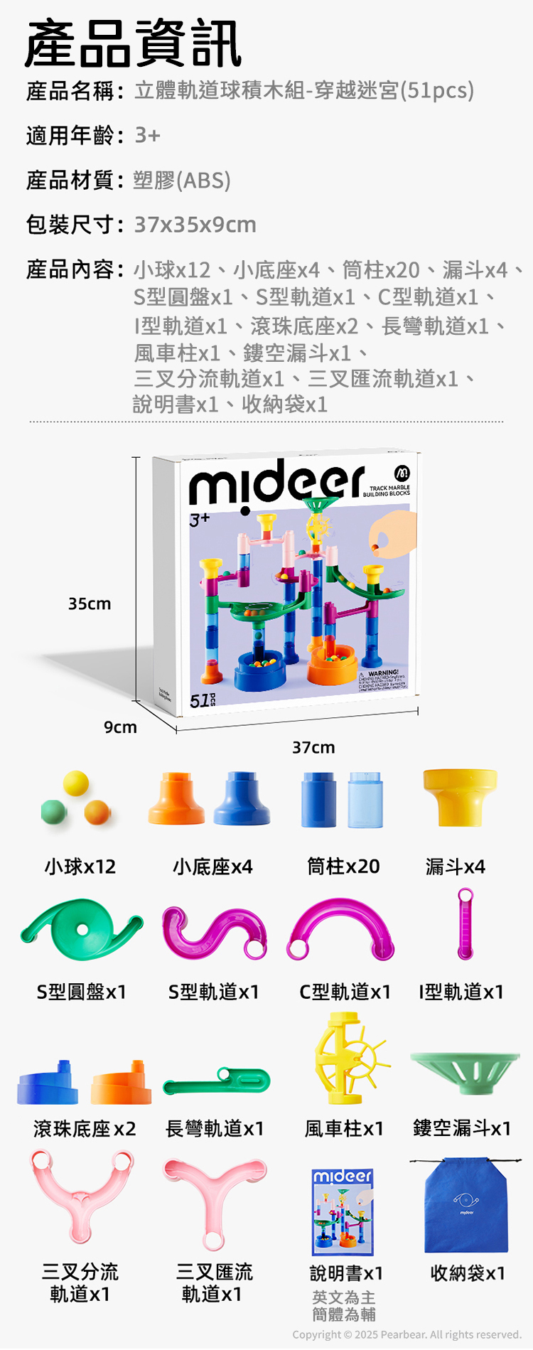 mideer 立體軌道球積木組-穿越迷宮(51pcs)