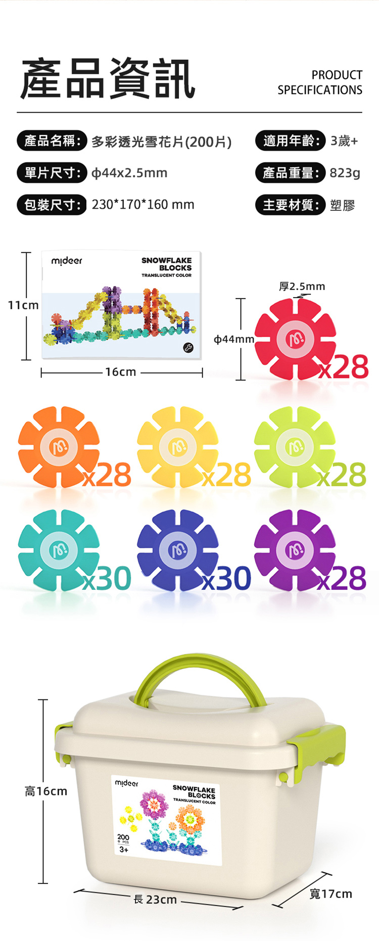 mideer 多彩透光雪花片(200片)