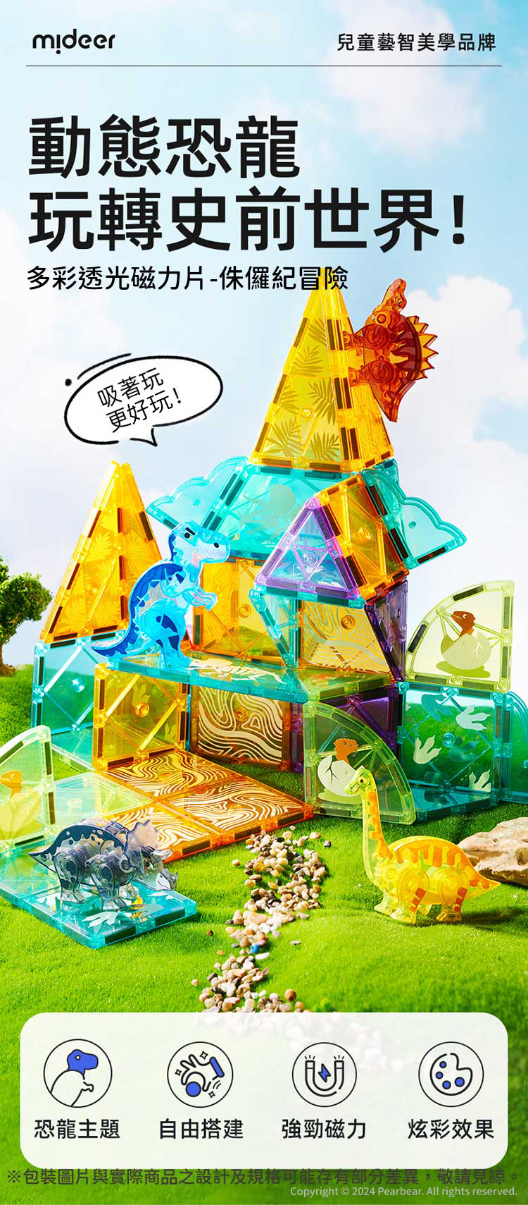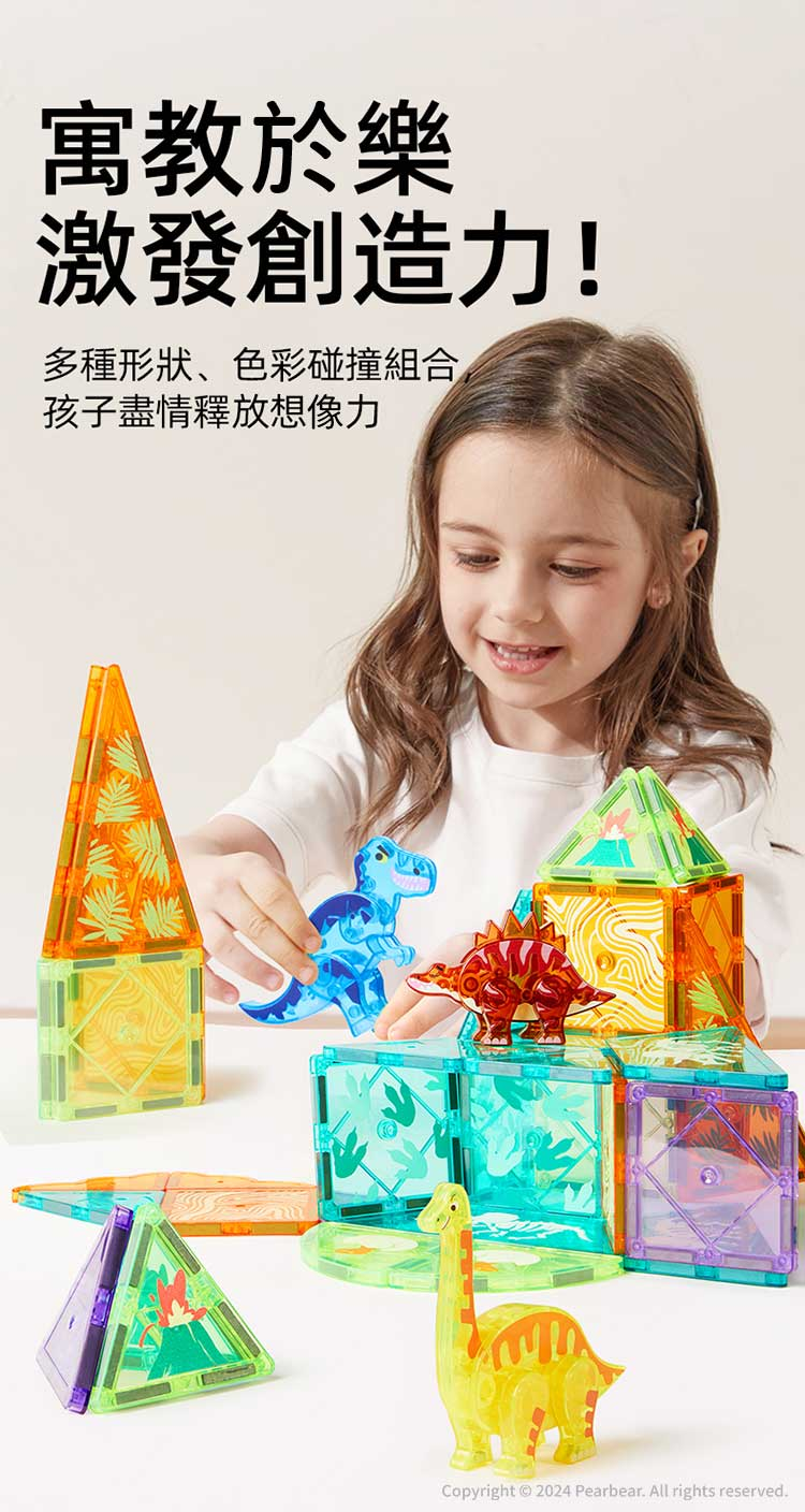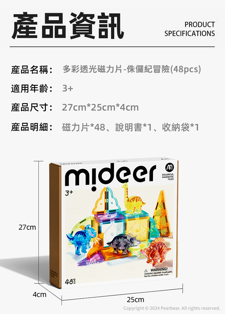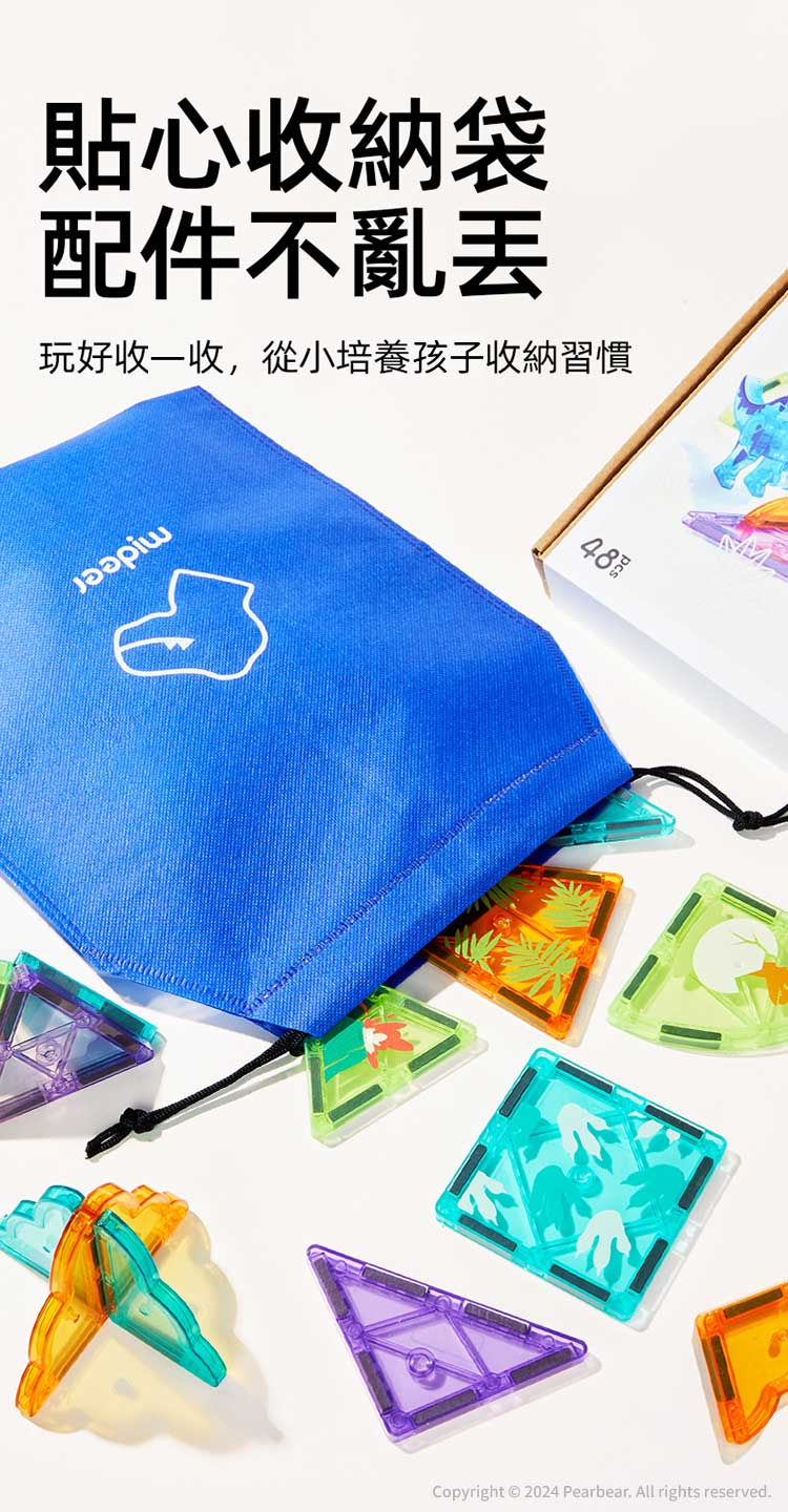 mideer 多彩透光磁力片-侏儸紀冒險(48pcs)