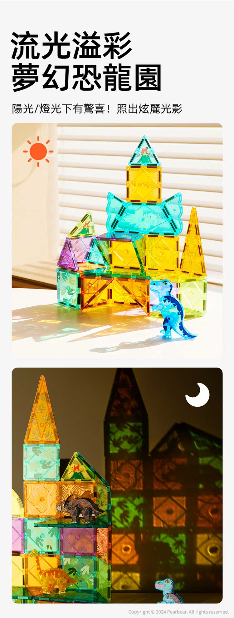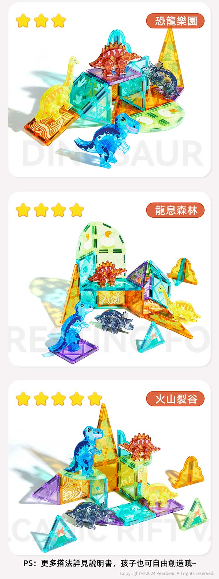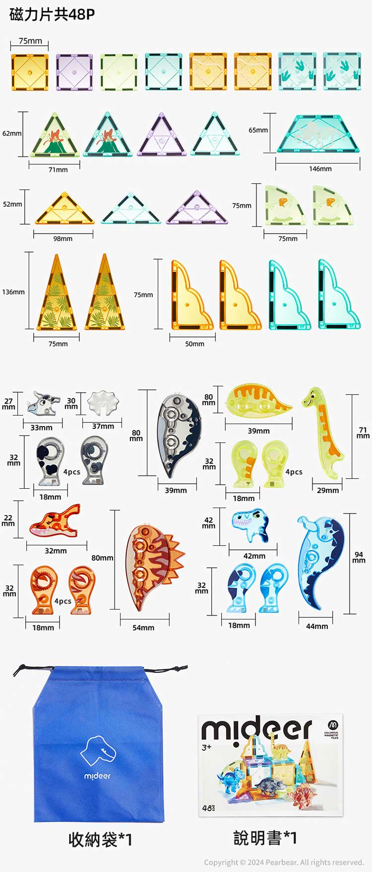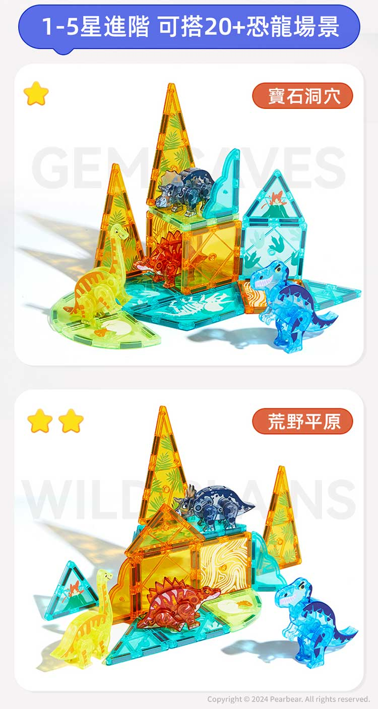 mideer 多彩透光磁力片-侏儸紀冒險(48pcs)