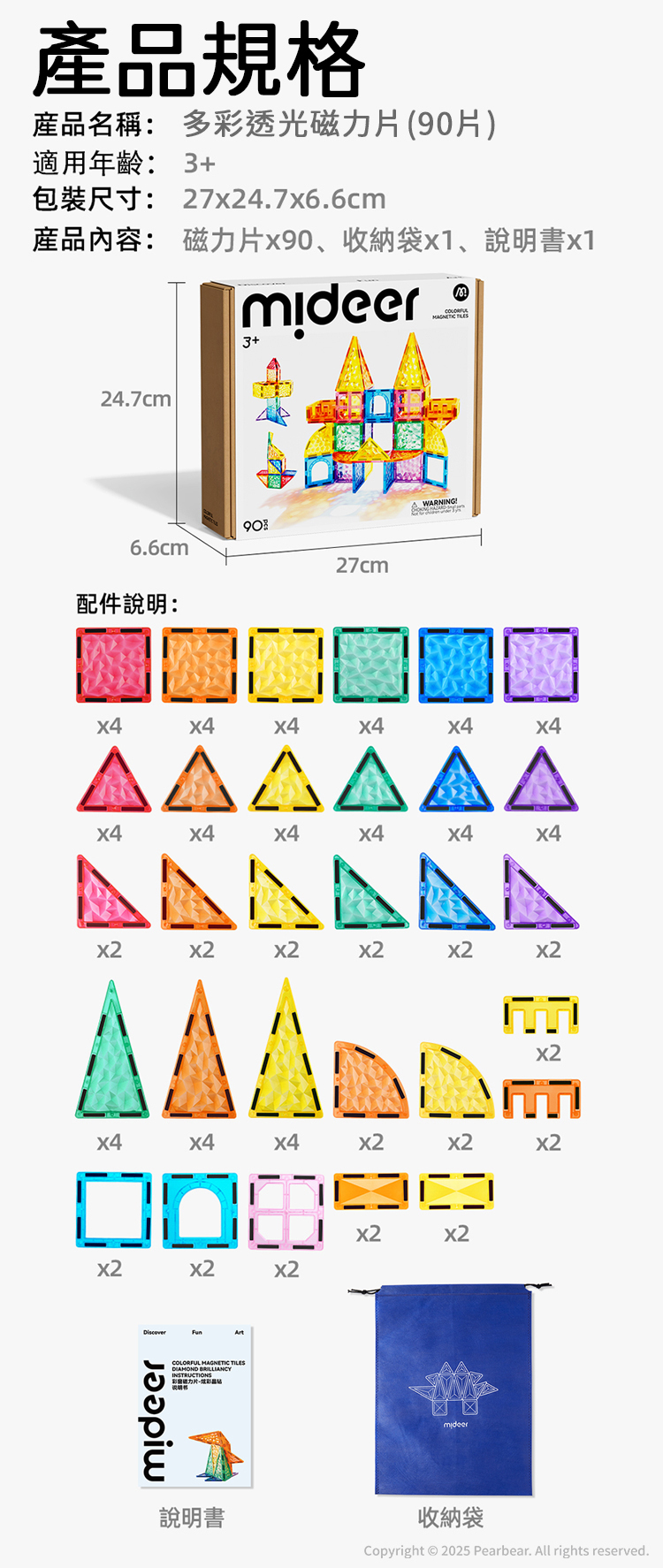 mideer 多彩透光磁力片(90片)