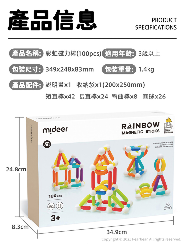 mideer 彩虹磁力棒(100PCS)