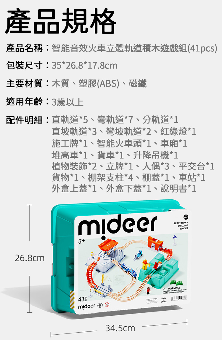 mideer 智能音效火車立體軌道積木遊戲組(41pcs)
