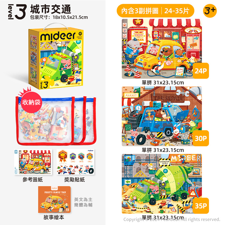 mideer 進階式拼圖-城市交通(LEVEL3)