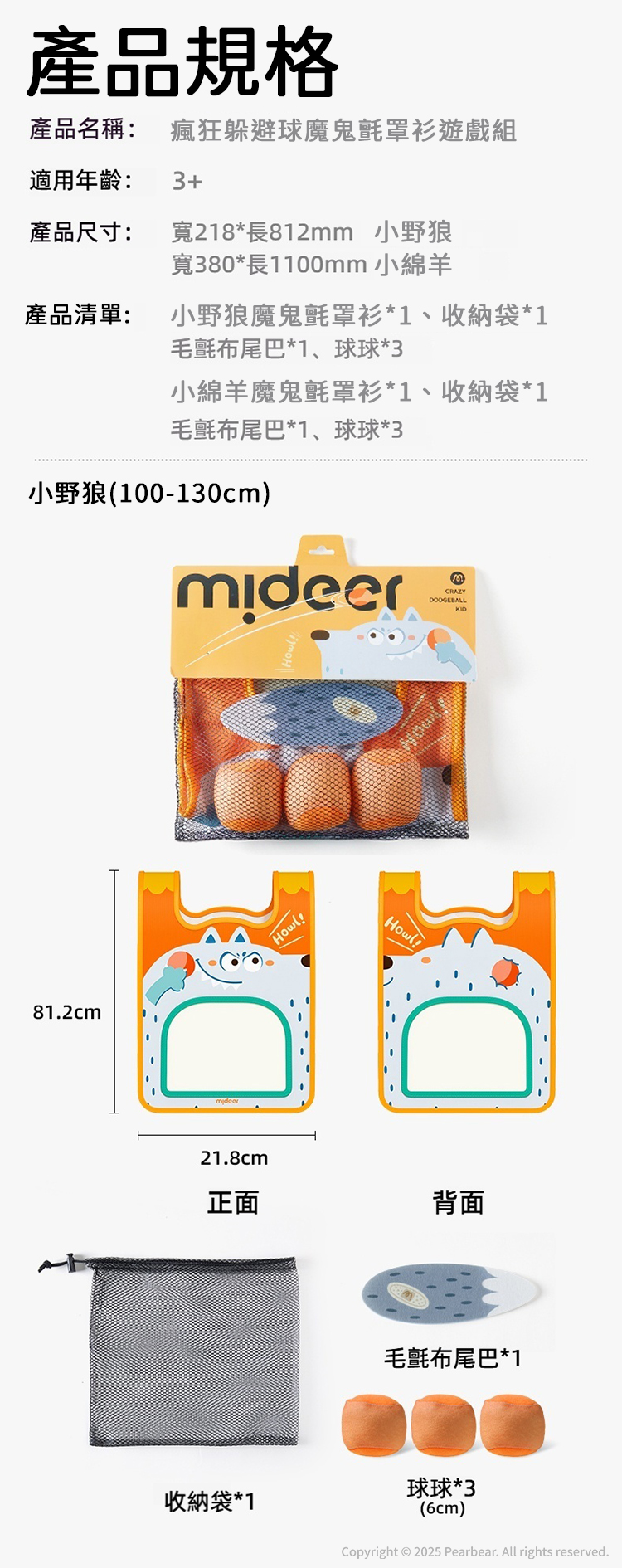 mideer 瘋狂躲避球魔鬼氈罩衫遊戲組-小野狼(100-130cm)
