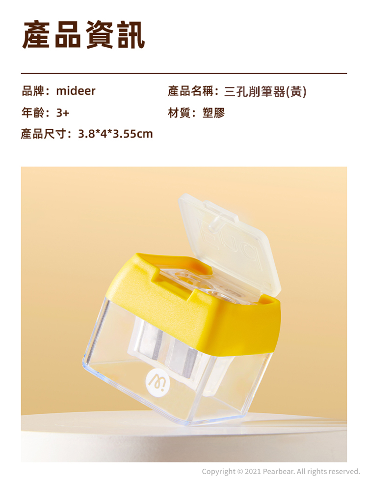 mideer 三孔削筆器(黃)