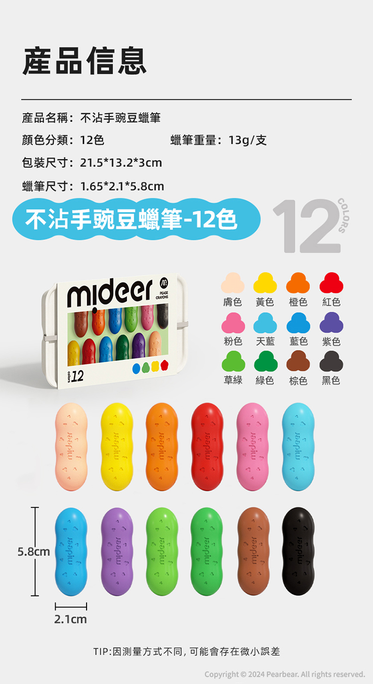 mideer 不沾手豌豆蠟筆(12色)