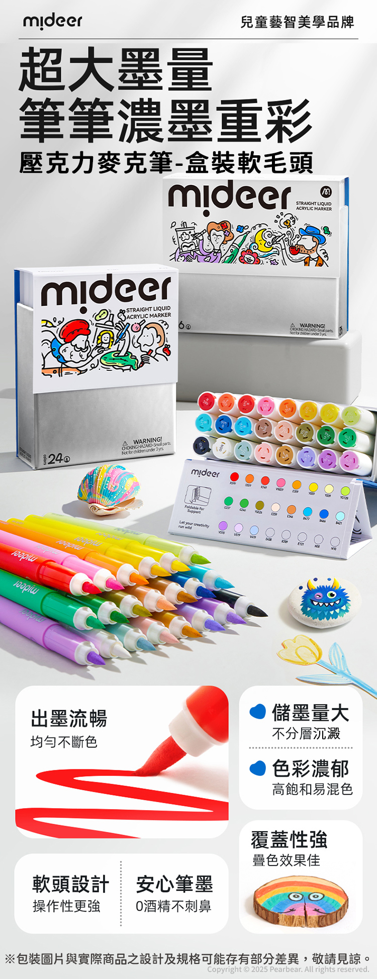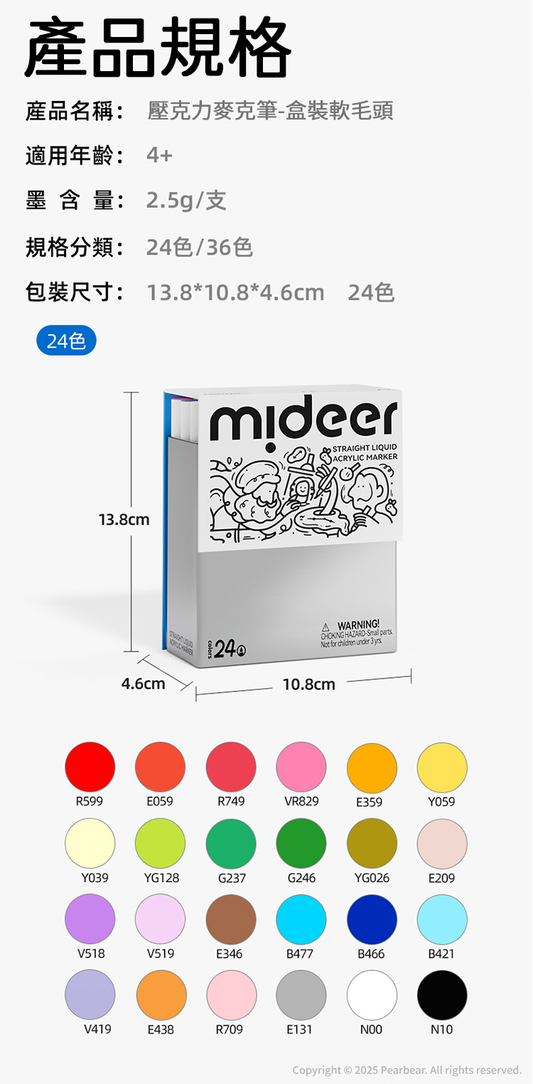 mideer 壓克力麥克筆-盒裝軟毛頭(24色)