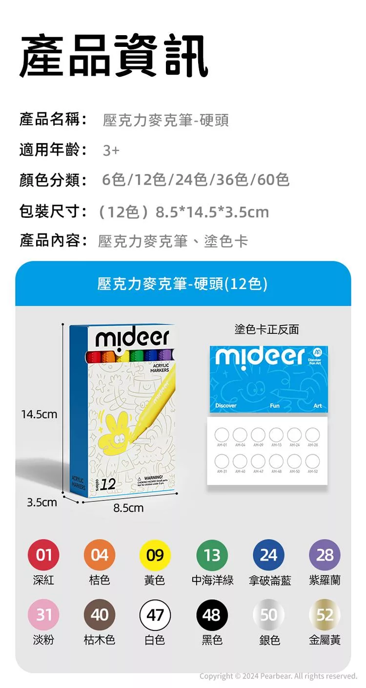 mideer 壓克力麥克筆-盒裝硬頭(12色)