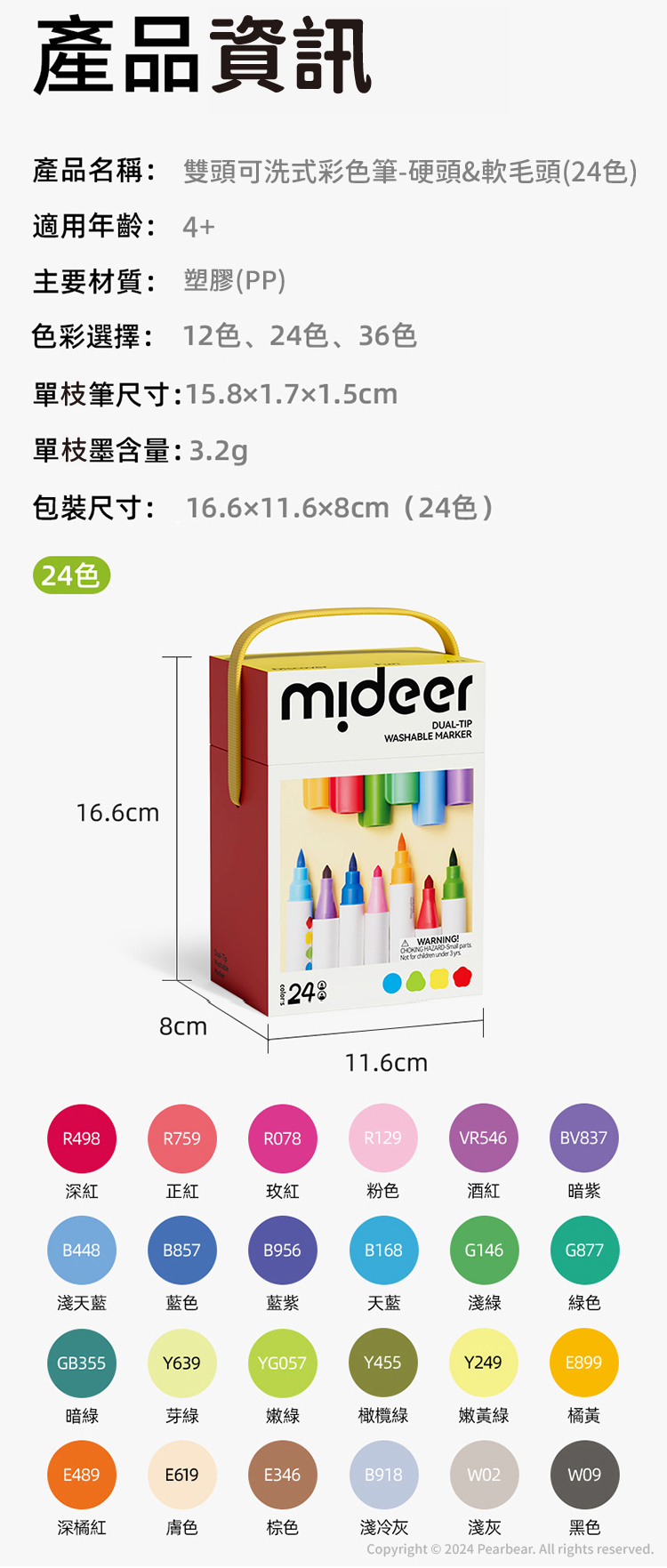 mideer 雙頭可洗式彩色筆-硬頭&軟毛頭(24色)