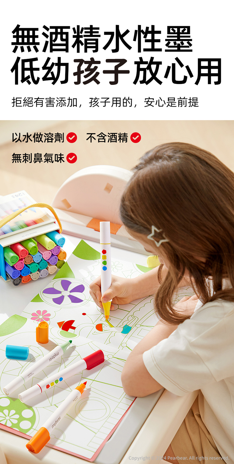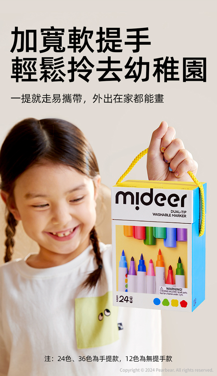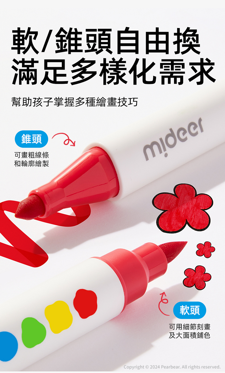 mideer 雙頭可洗式彩色筆-硬頭&軟毛頭(36色)