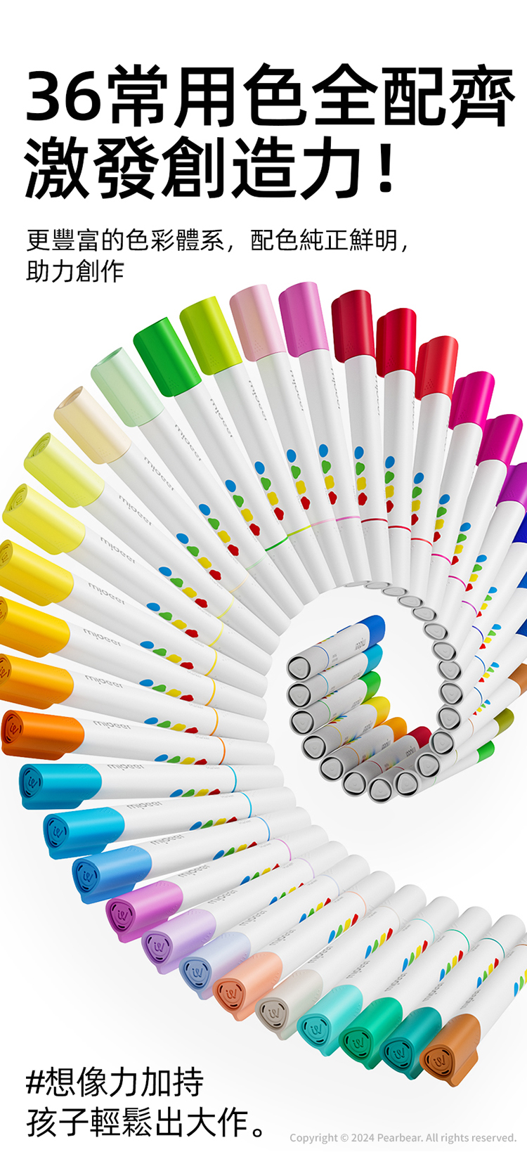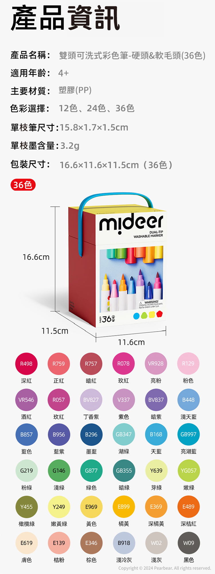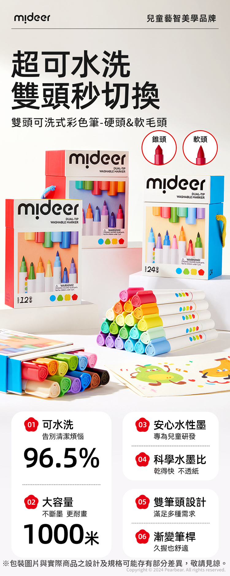 mideer 雙頭可洗式彩色筆-硬頭&軟毛頭(36色)