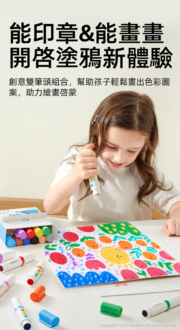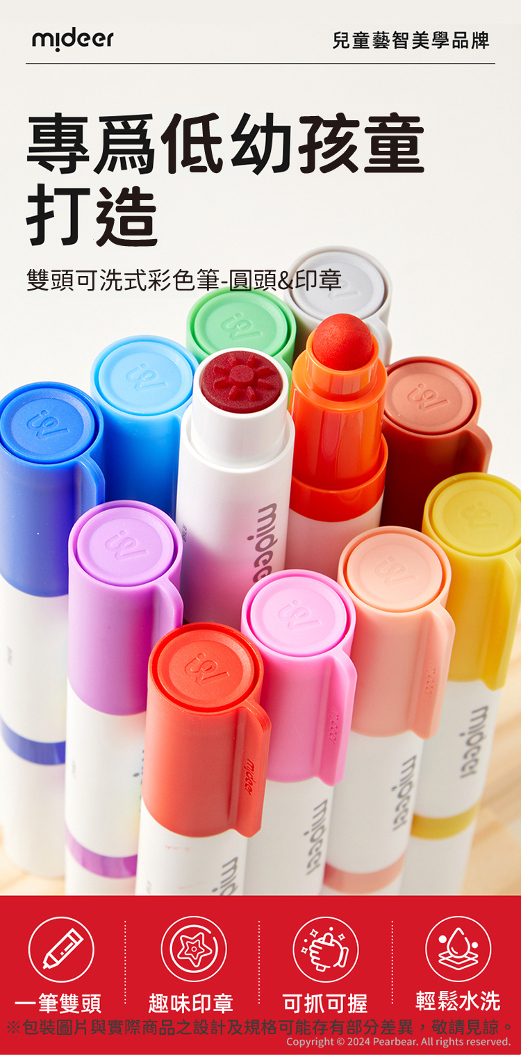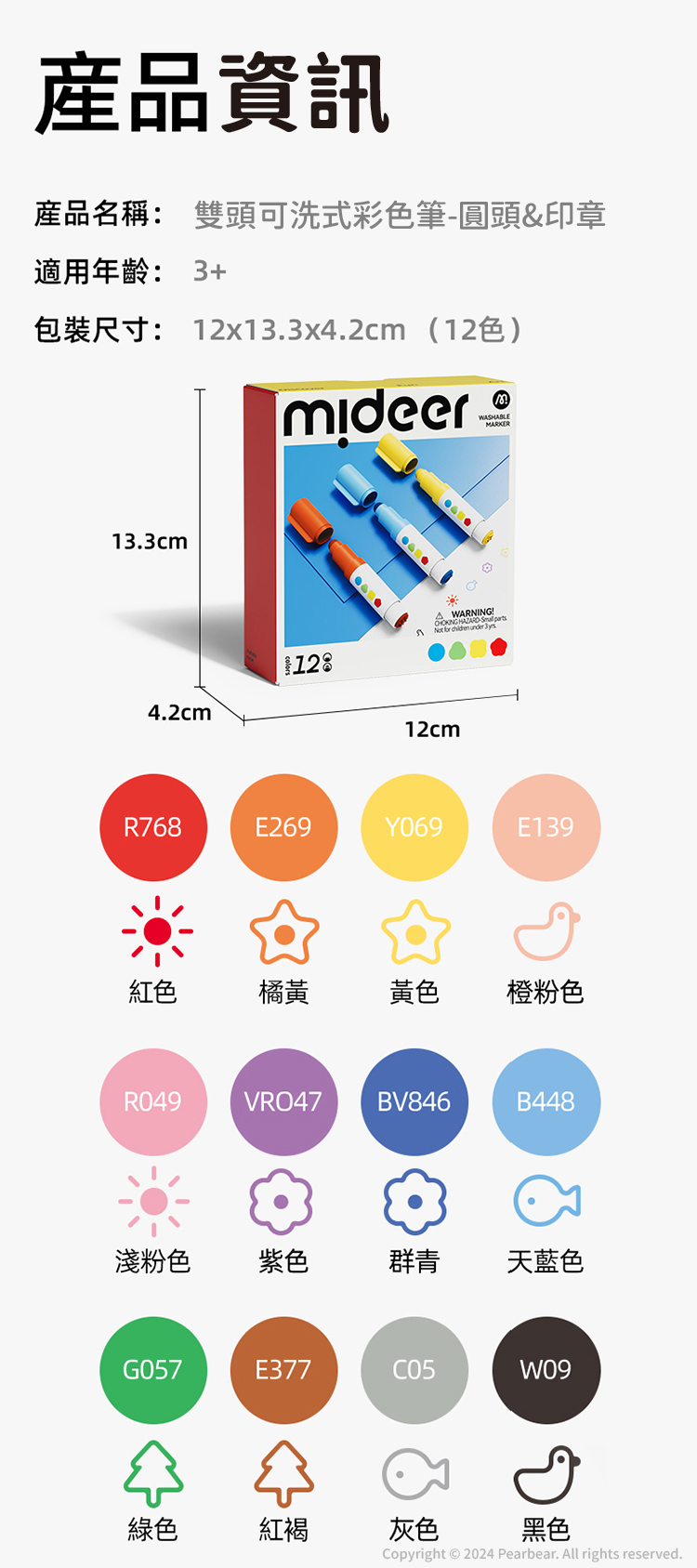 mideer 雙頭可洗式彩色筆-圓頭&印章(12色)