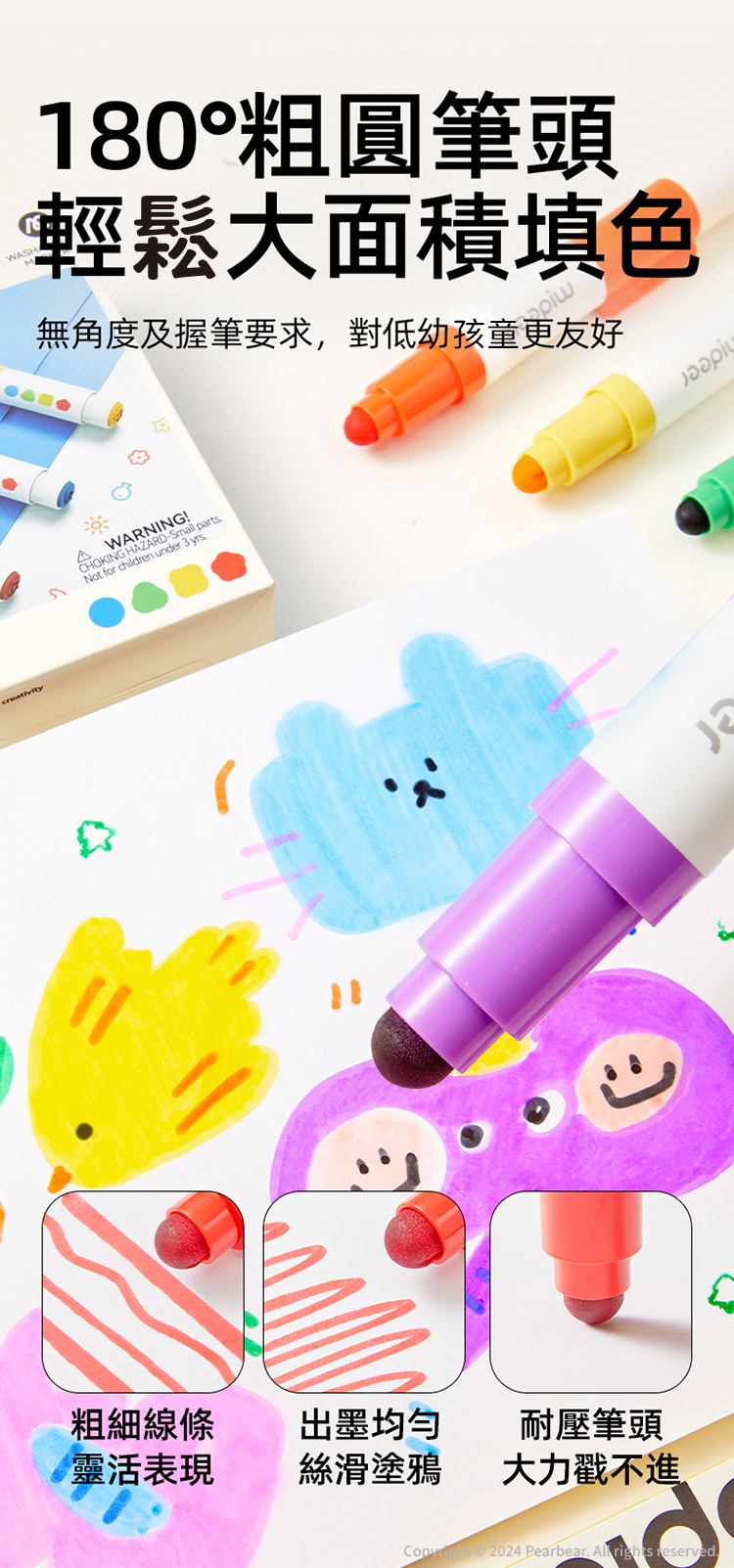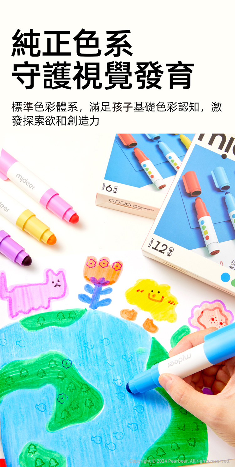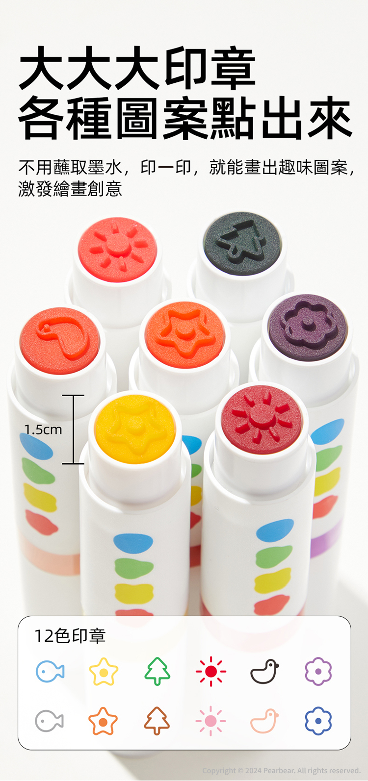 mideer 雙頭可洗式彩色筆-圓頭&印章(12色)