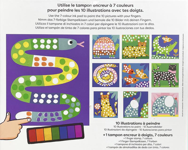 【法國 Moulin Roty】手指印泥畫-斑紋動物這款有趣且感官豐富的遊戲,讓孩子可以用手指表達自己得創意!可以使用手指畫出來自Les Toupitis系列的10幅插圖。