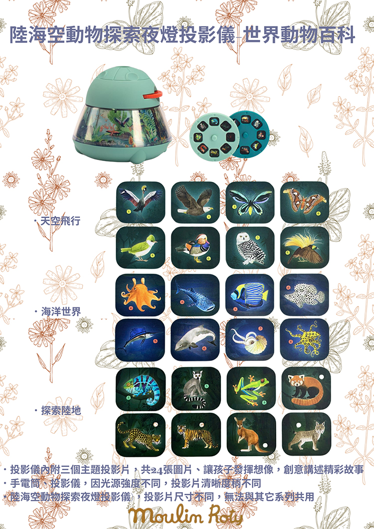 Moulin Roty 陸海空動物探索夜燈投影儀-世界動物百科
