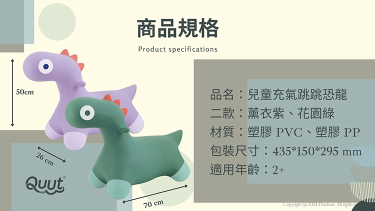 ‧內容物:跳跳恐龍、塑膠塞、打氣筒