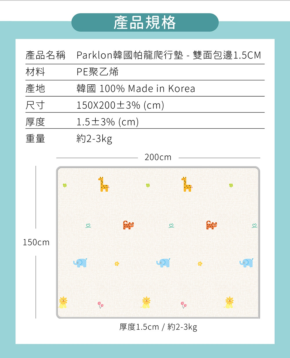 韓國PARKLON 雙面包邊爬行墊