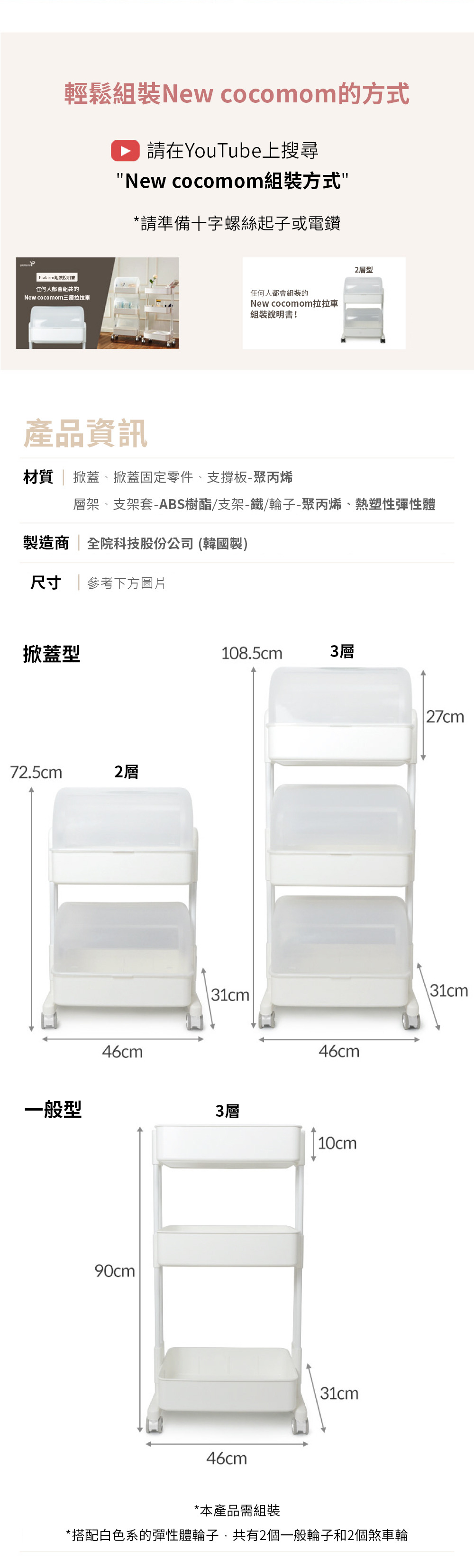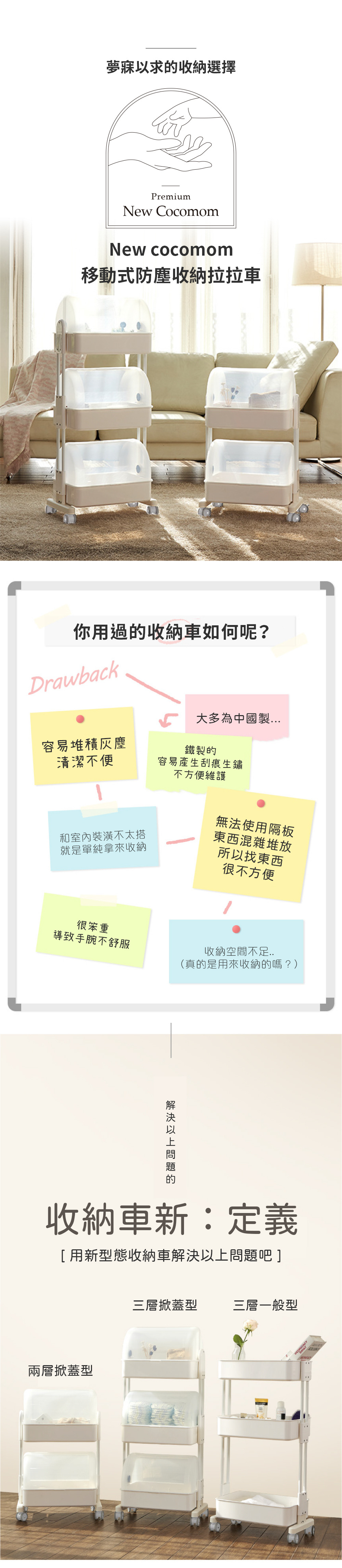韓國PLAFARM 移動式防塵收納拉拉車-二層