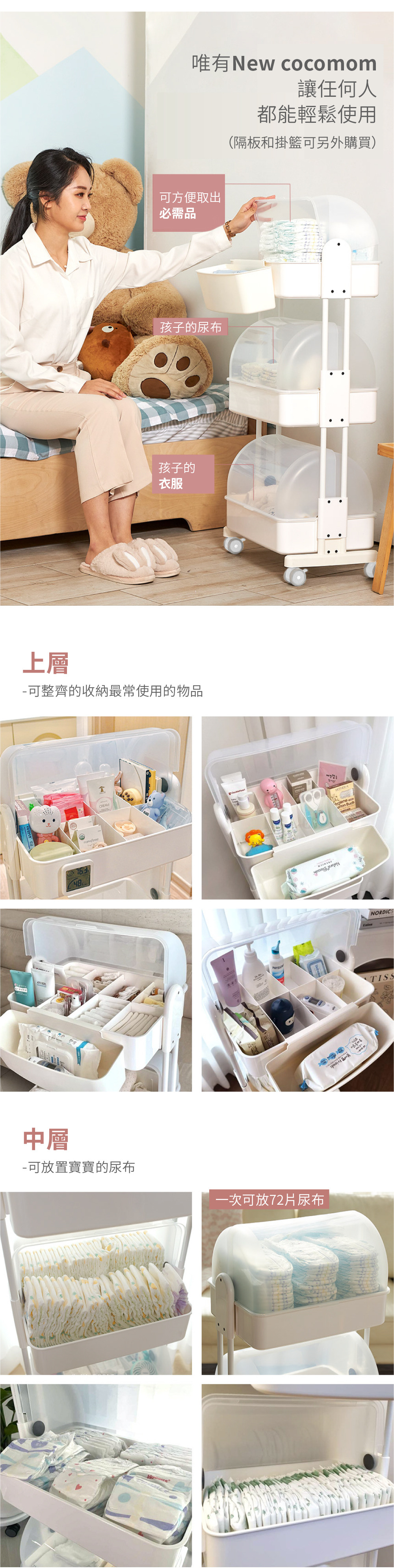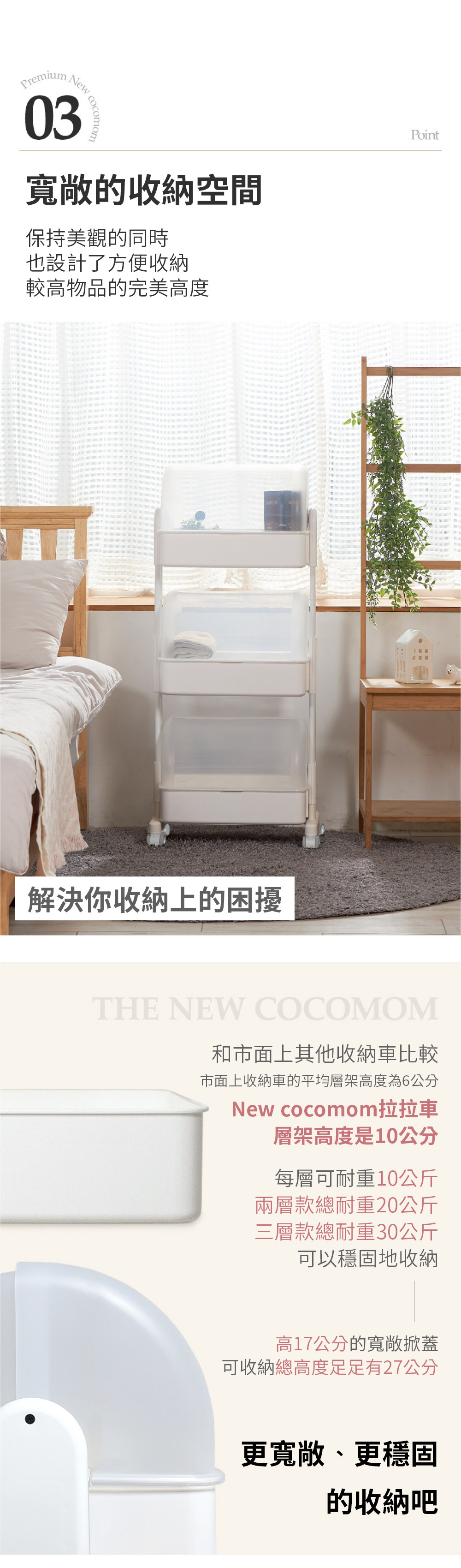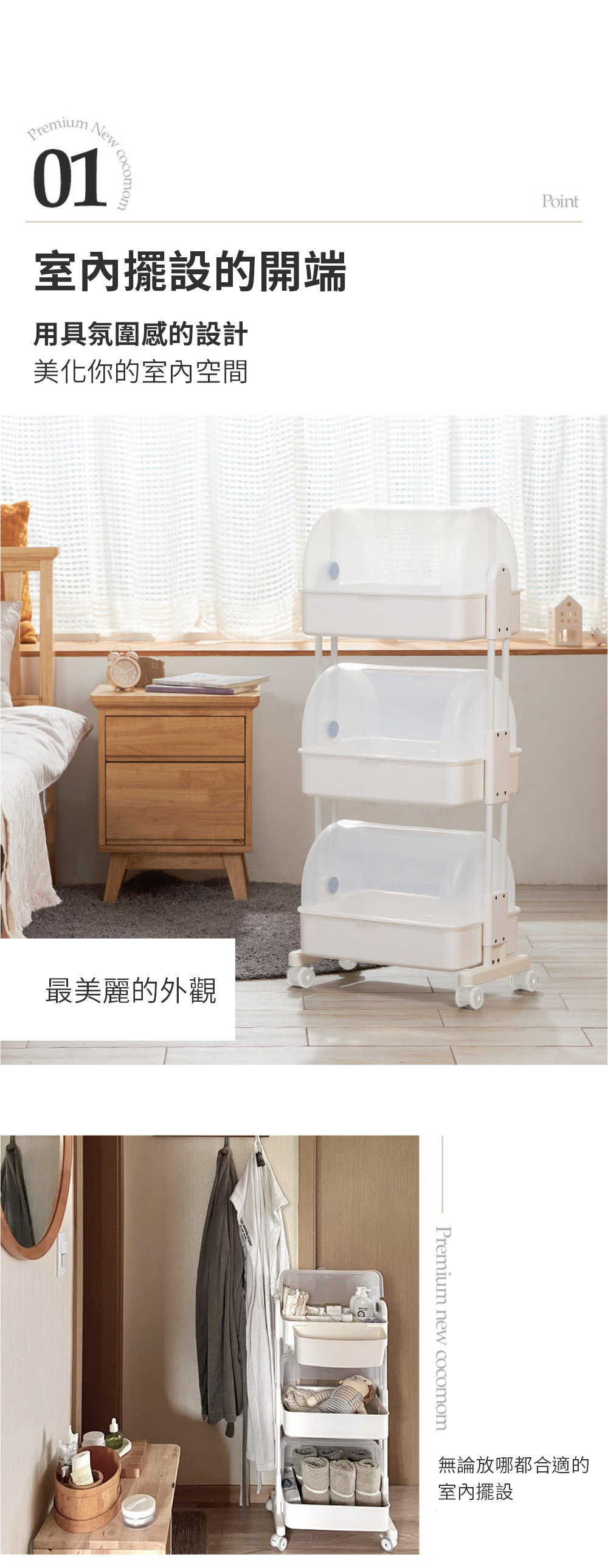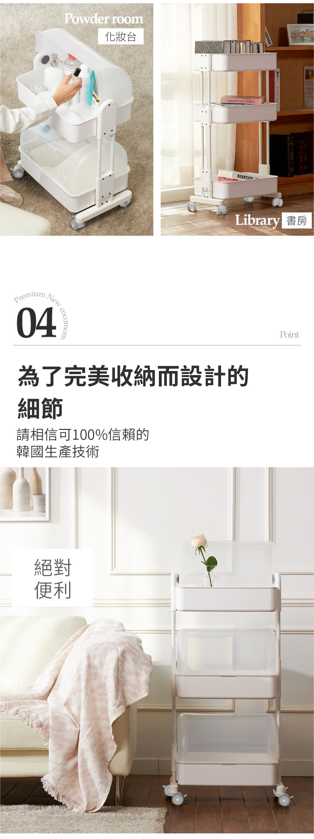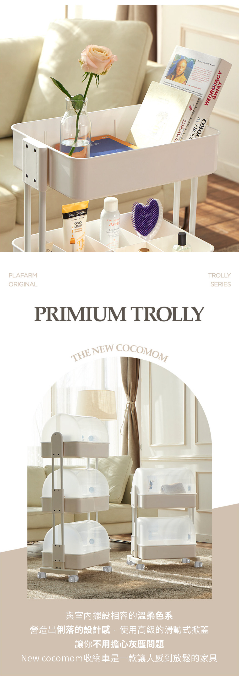韓國PLAFARM 移動式防塵收納拉拉車-三層