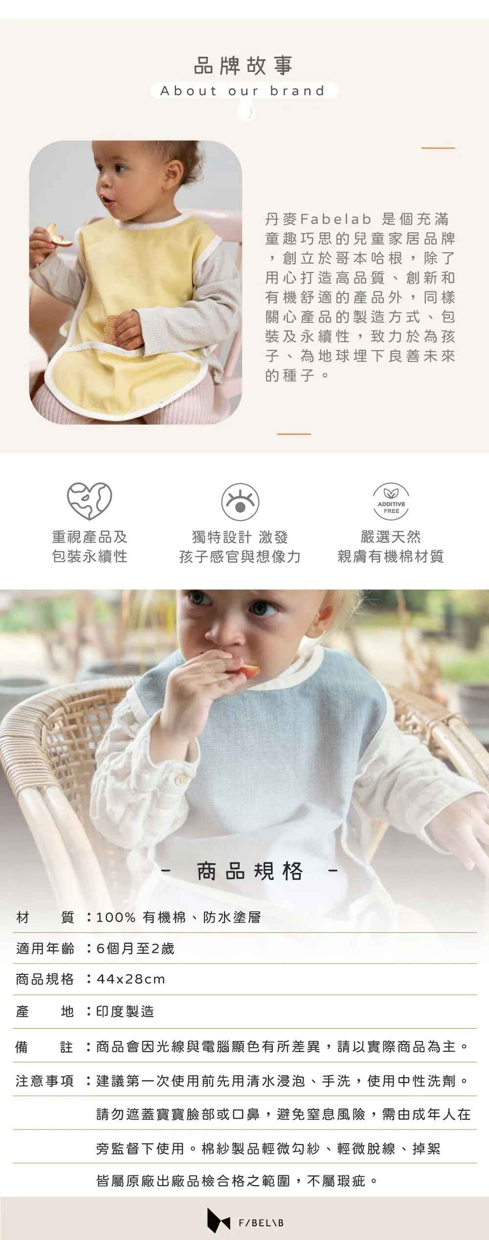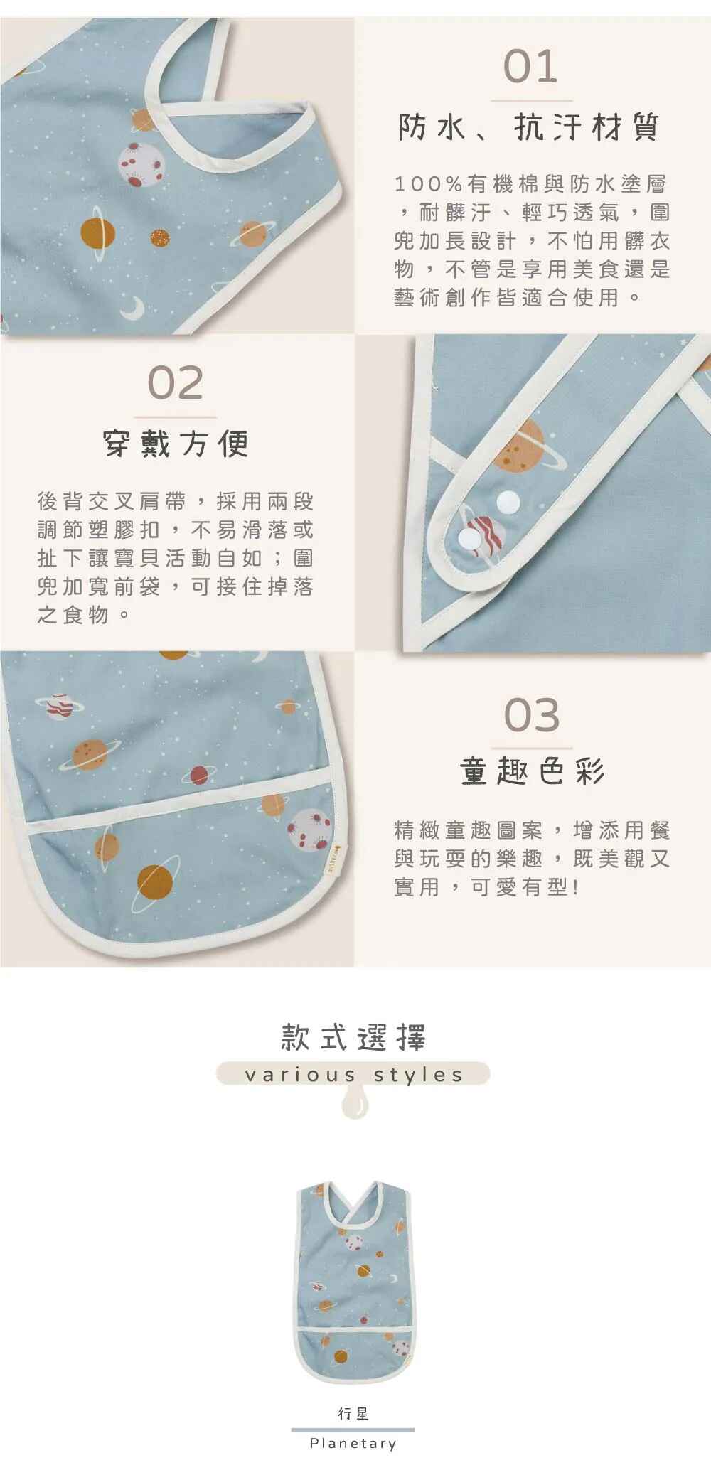 材質:GOTS100%有機棉、防水塗層