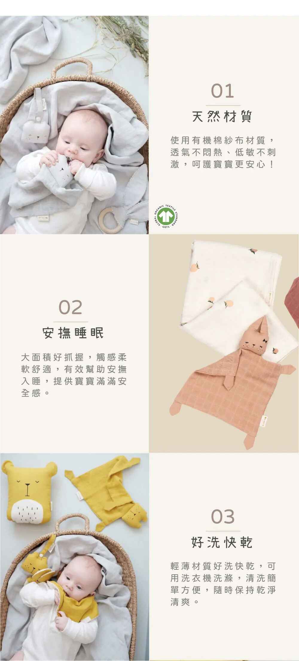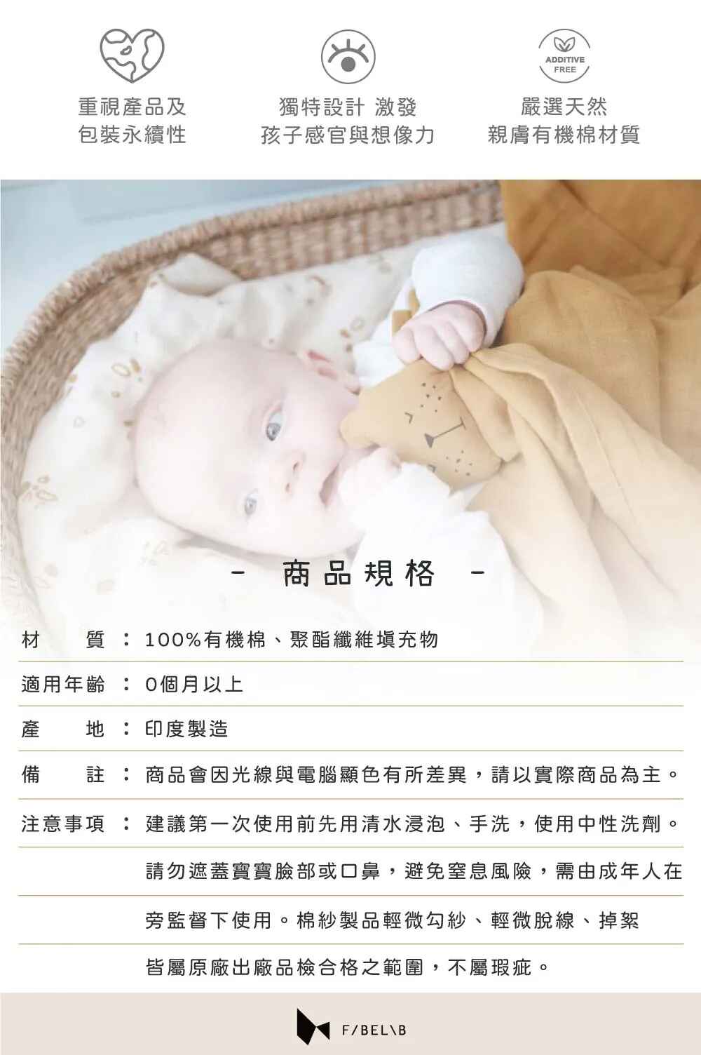 材質:100%有機棉&聚酯纖維填充物
