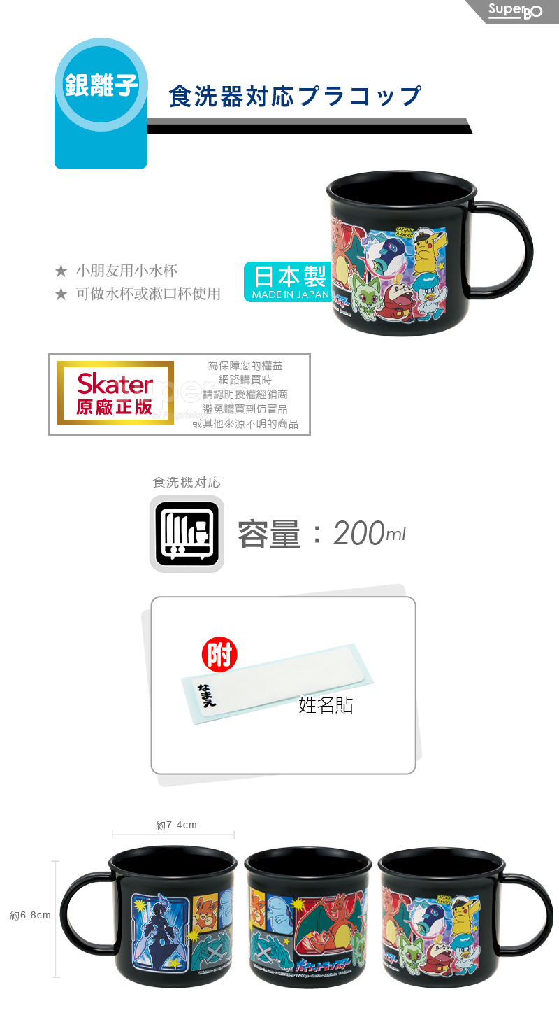 Skater 銀離子小牛奶杯 寶可夢典藏款黑