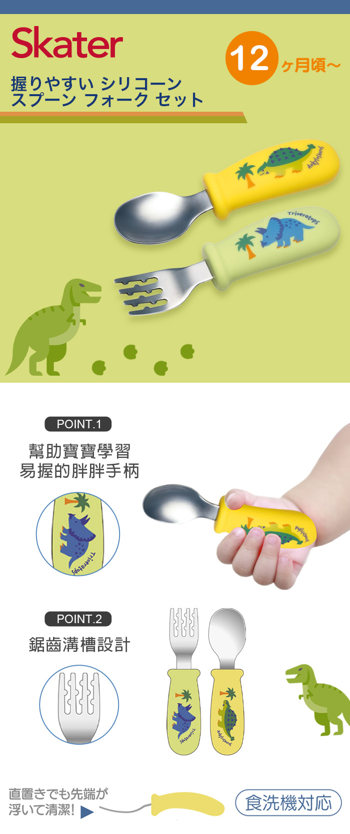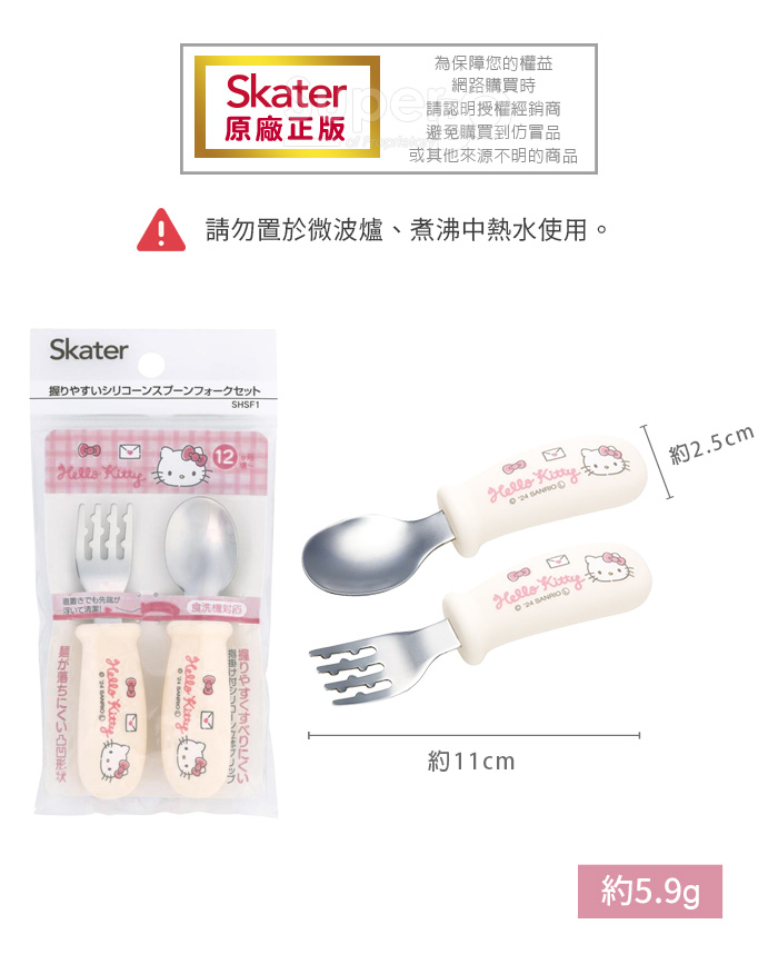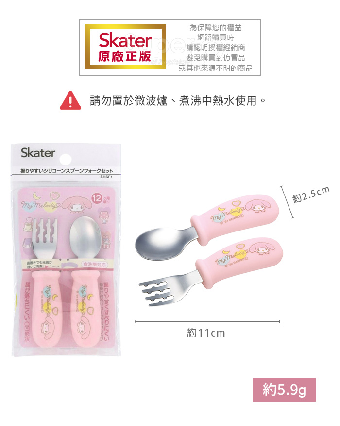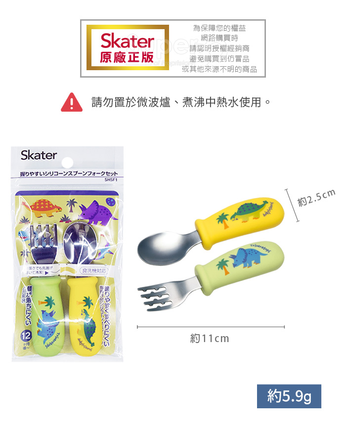 ◆幼兒用湯叉組。◆握柄弧形設計,方便孩童抓握;平放桌上,就口處也不會碰觸到桌面。◆鋸齒狀叉子,麵食類不易滑落。材質:本體-不鏽鋼握柄-矽膠/140度尺 寸:約11cm產地:中國1、請勿讓兒童單獨使用,請在成人看照下使用。2、請以海綿清洗,勿用鋼刷或硬質物洗滌,以免刮傷。3、此品為日本原裝,包裝密實,若拆封後無法復原,請確認所需後再請購買。4、請勿置入於微波爐,煮沸中熱水使用。