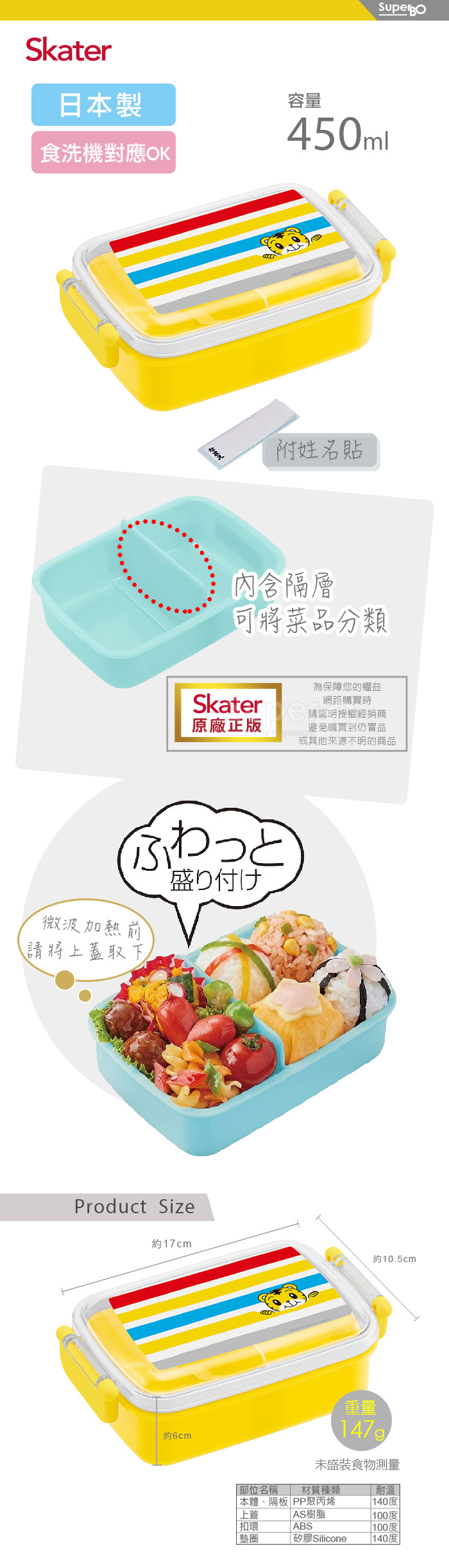 Skater 日本製小餐盒450ml 巧虎