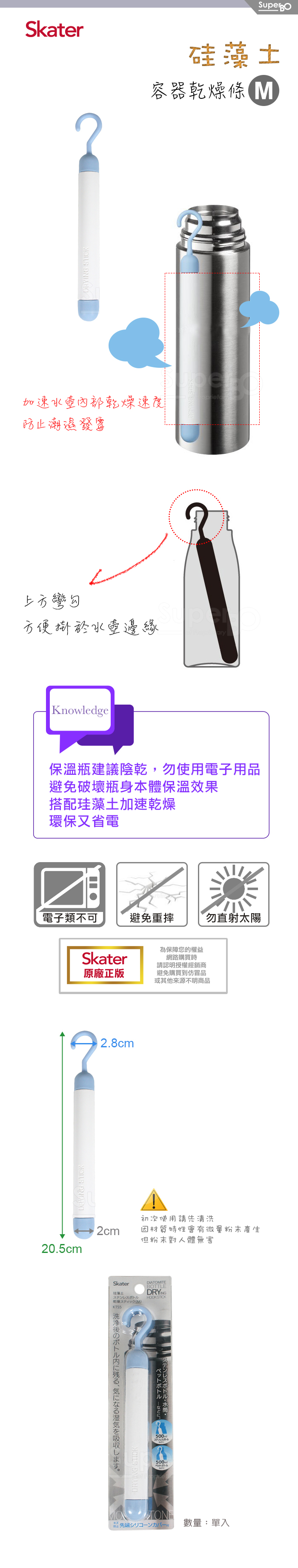 ◆加速水壺內部乾燥速度,防止潮濕發霉。 ◆上方彎勾,方便掛於水壺邊緣。◆適用於約500ml水壺。材質:珪藻土尺寸:約2x20.5 cm 保存方式:置於乾燥處 產地:中國 初次使用請先清洗,因材質特性會有微量粉末產生,但此粉末對人體無害1、清洗後請自然陰乾,勿直射太陽。2、請在成人陪同下使用。3、請勿重摔重擊,以免碎裂。2、此品為原裝進口,若拆封後無法復原,請確認所需後再請購買。
