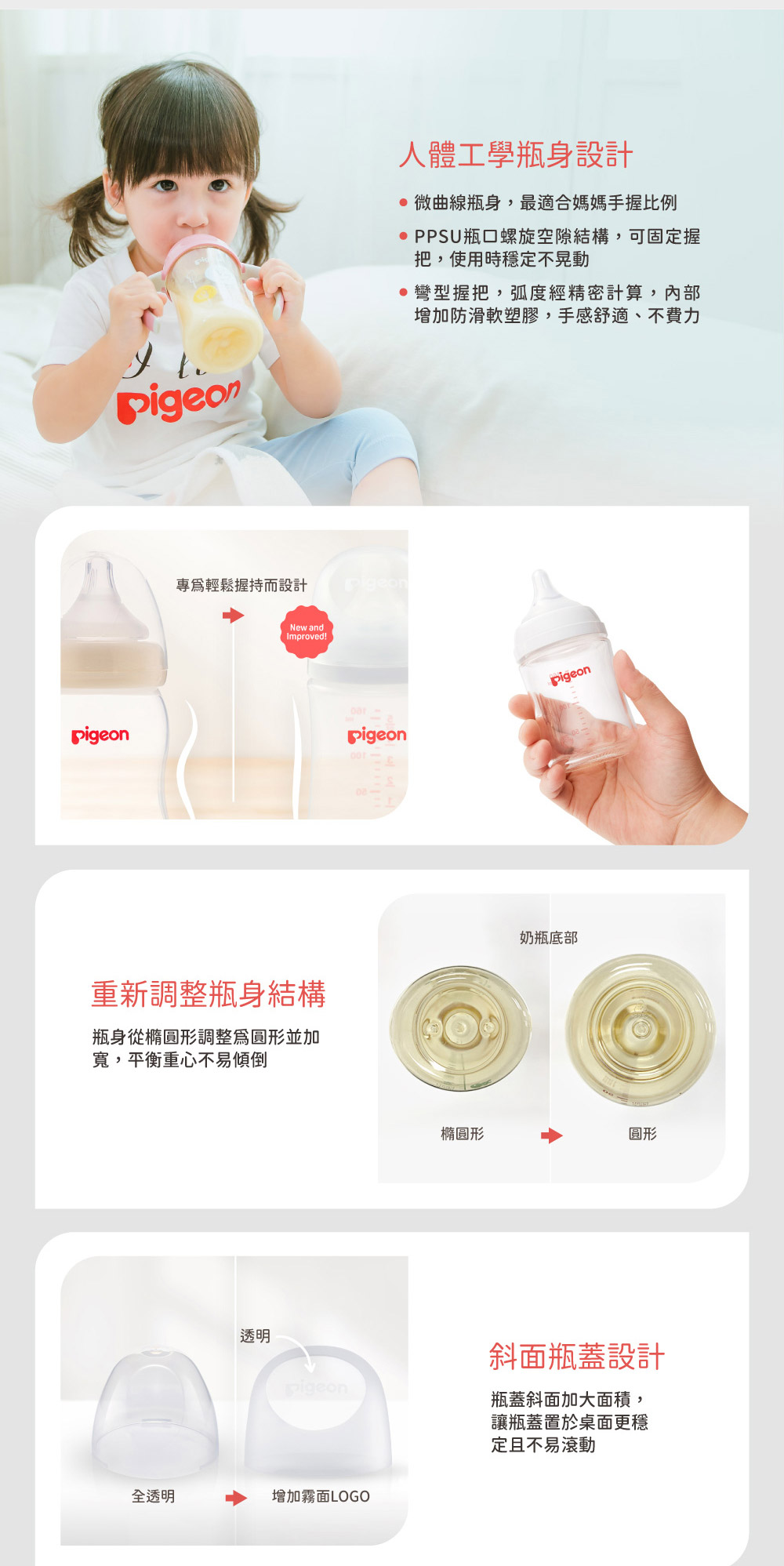 4.全新人體工學曲線設計瓶身,參考前輩媽媽們的意見製成,持握更方便,花色更多樣!