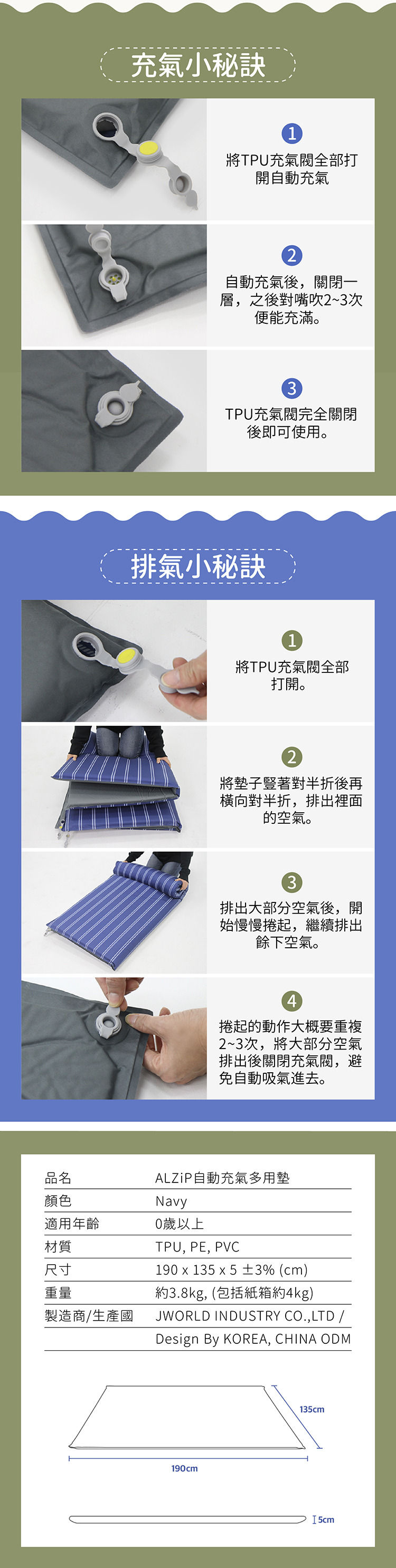 韓國ALZIPMAT 智能型自動充氣多用墊