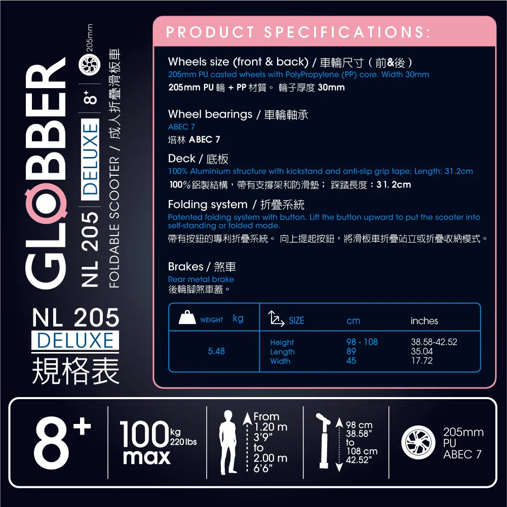 ※規格及重量以實車為準,GLOBBER原廠保留規格變動權利。