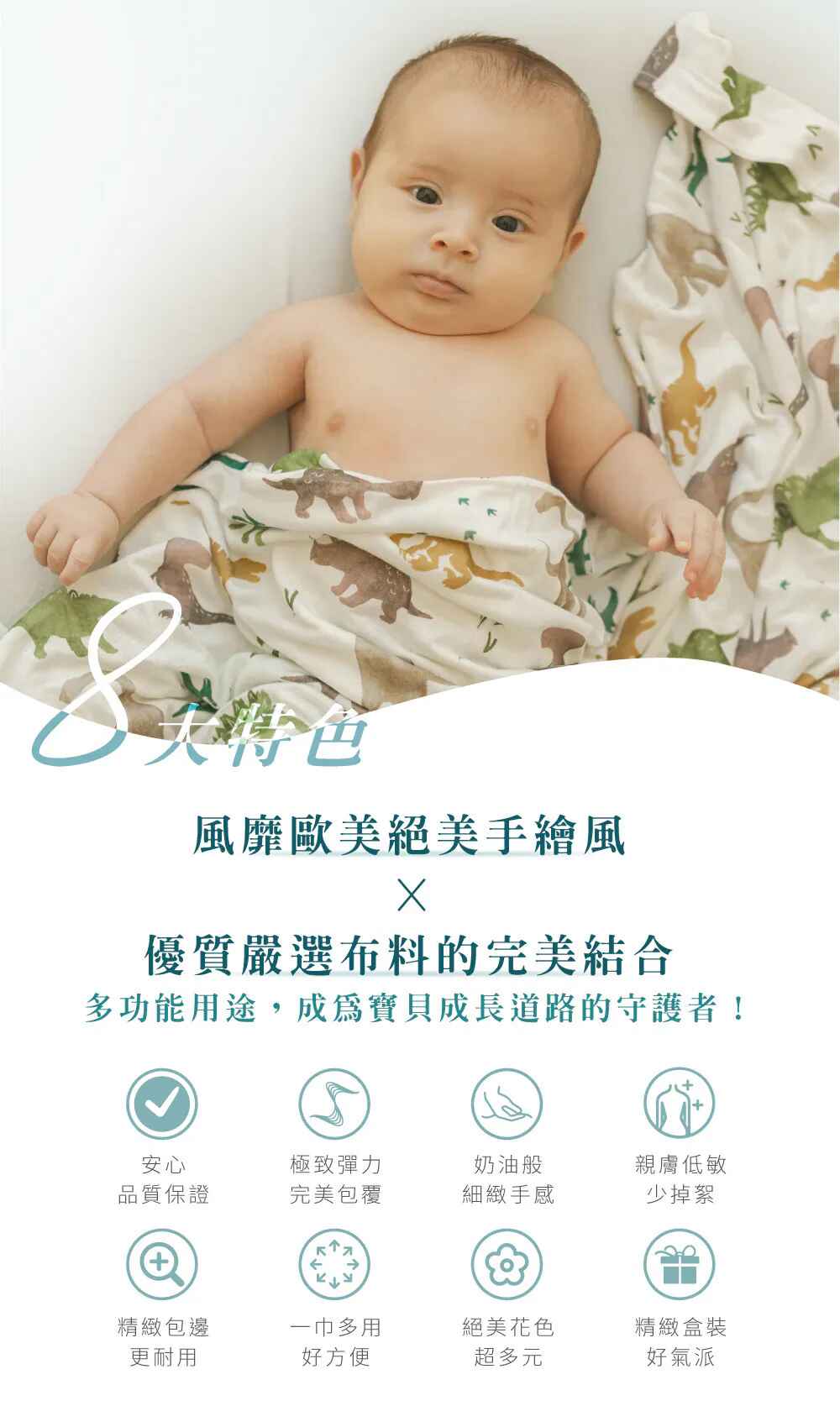 請勿遮蓋寶寶臉部或部分口鼻,避免窒息風險。