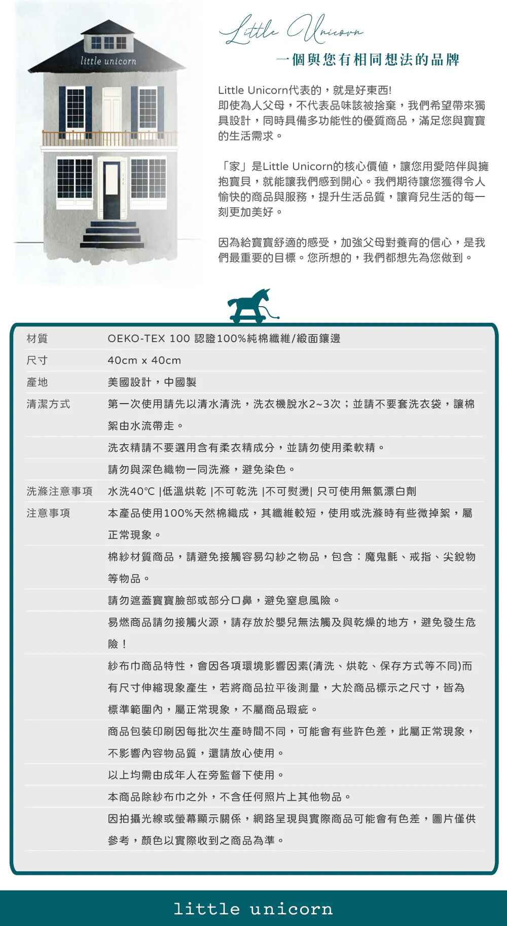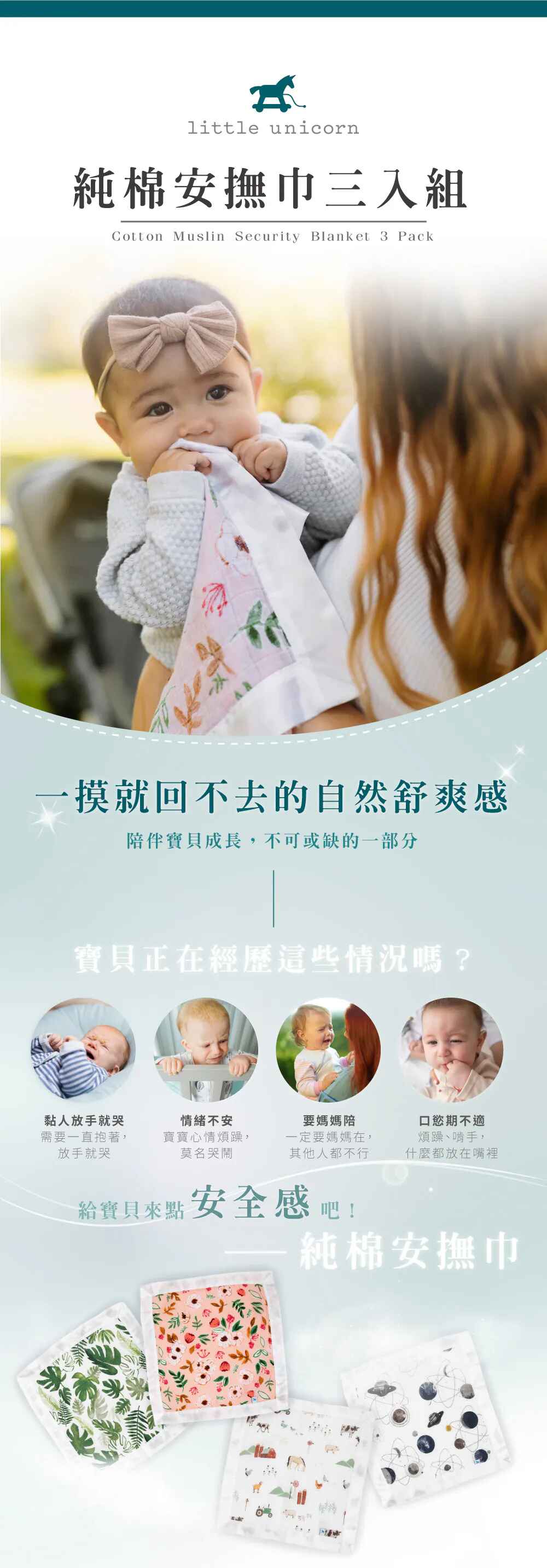 Little Unicorn 純棉安撫巾三入組 (多款可選)