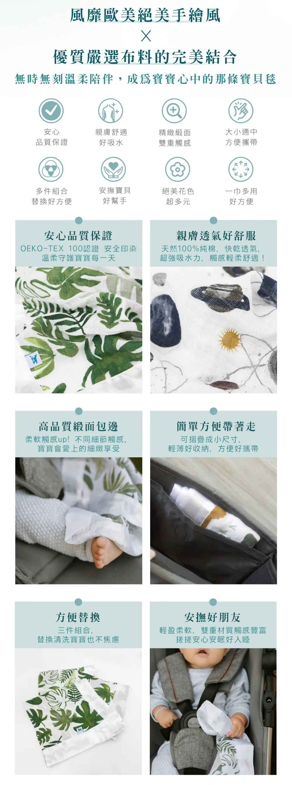 材質:OEKO-TEX 100 認證100%純棉纖維/緞面鑲邊
