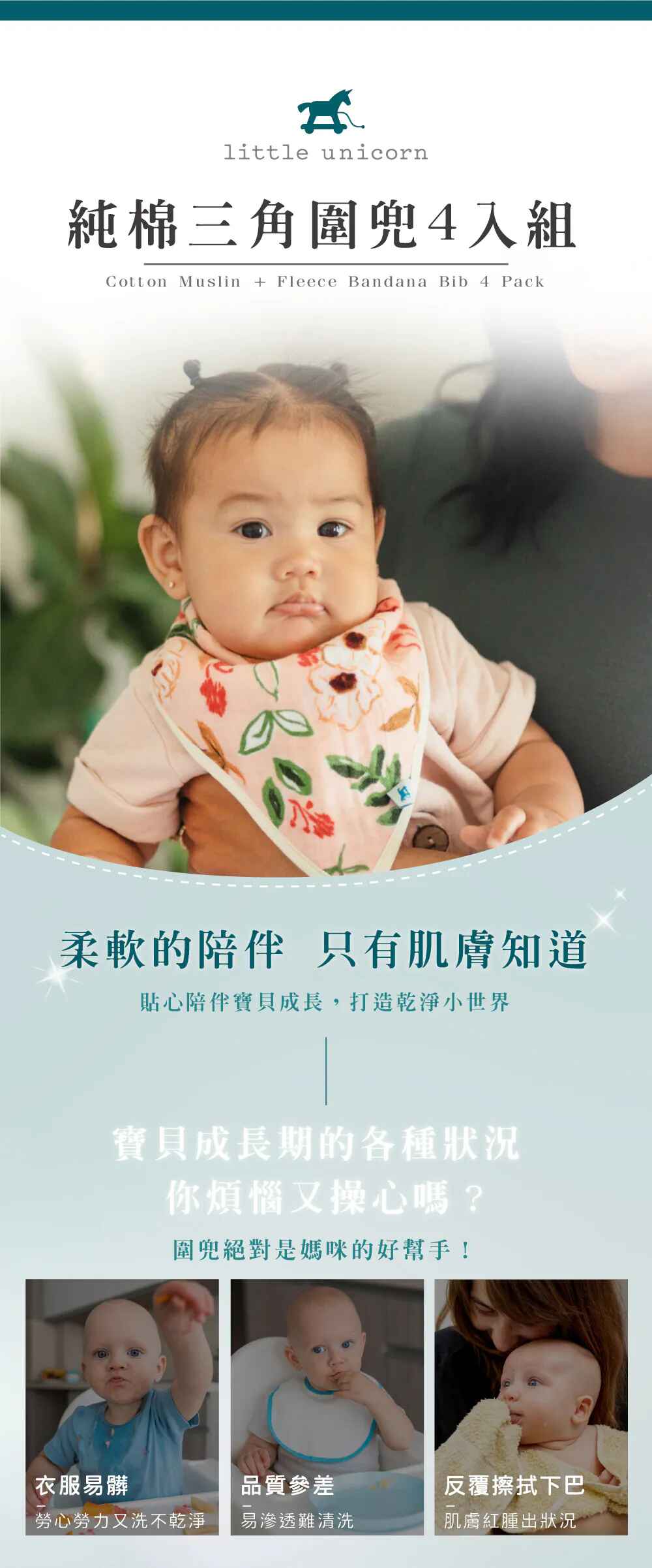 Little Unicorn 純棉三角圍兜4入組 (多款可選)