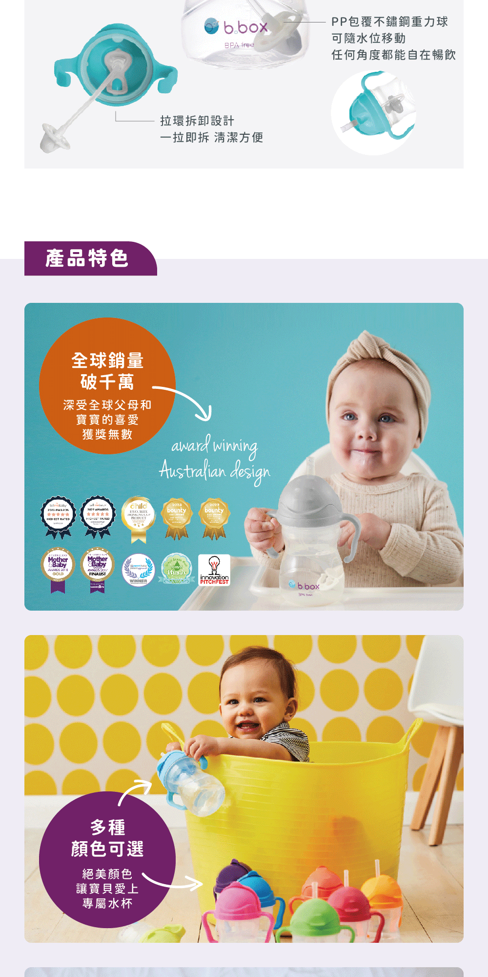 • 重力球吸管設計,任何角度都能飲用