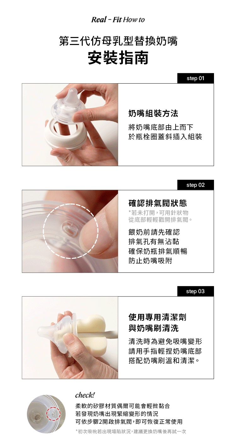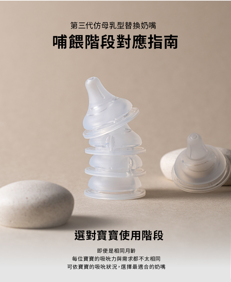 奶嘴:搭配第1階段 圓孔奶嘴(適合1個月以上使用)