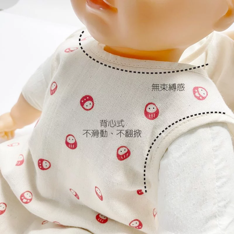 肚兜式綁帶設計,不吊脖子的穿戴設計讓寶寶穿得住。材質為表層紗布、背面毛圈,吸水快乾、親膚透氣,夏季時可單穿,涼爽舒適。非常適合喜歡無拘束的好動寶寶。