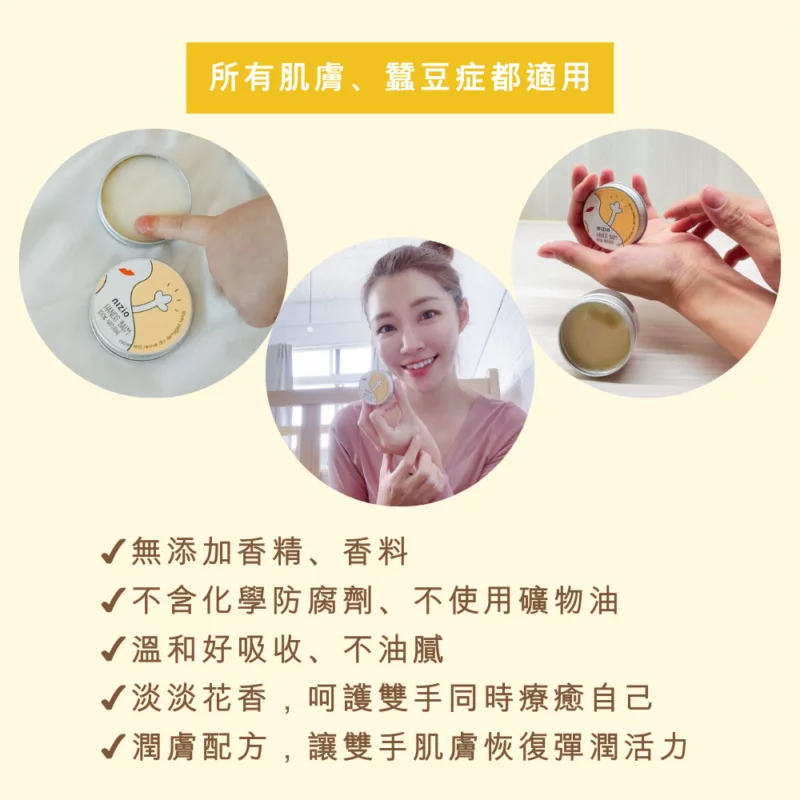 適合經常接觸清潔劑、碰水而導致粗糙乾裂的肌膚。無有害物質,不需擔心塗抹後接觸寶寶食器與肌膚