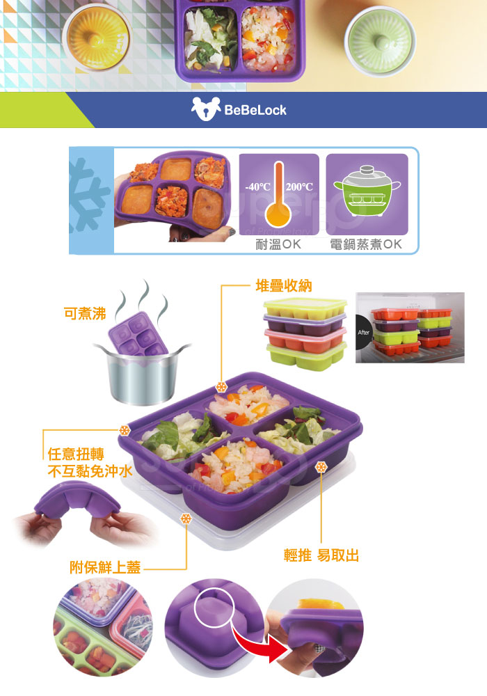 ◆離乳食調理,可冷凍、可加熱,材質柔軟方便取出,可重複使用。
