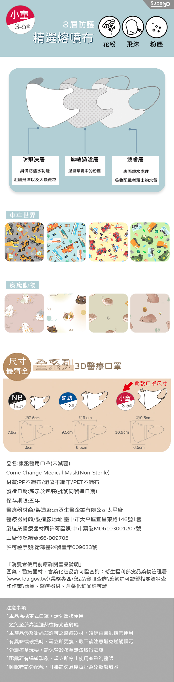 SuperBO 兒童盒裝立體口罩(20入/盒)