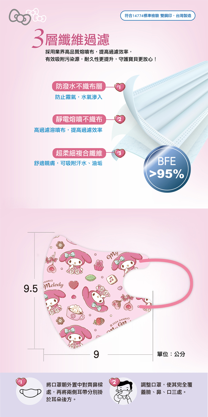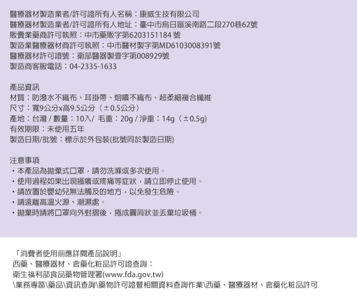 材質:防潑水不織布、耳掛帶、熔噴不織布、超柔細複合纖維