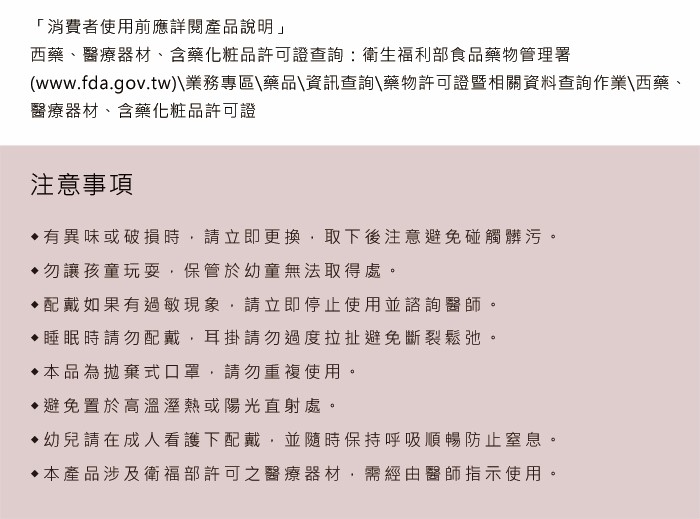 6.幼兒請在成人看護下配戴,並隨時保持呼吸順暢,防止窒息。