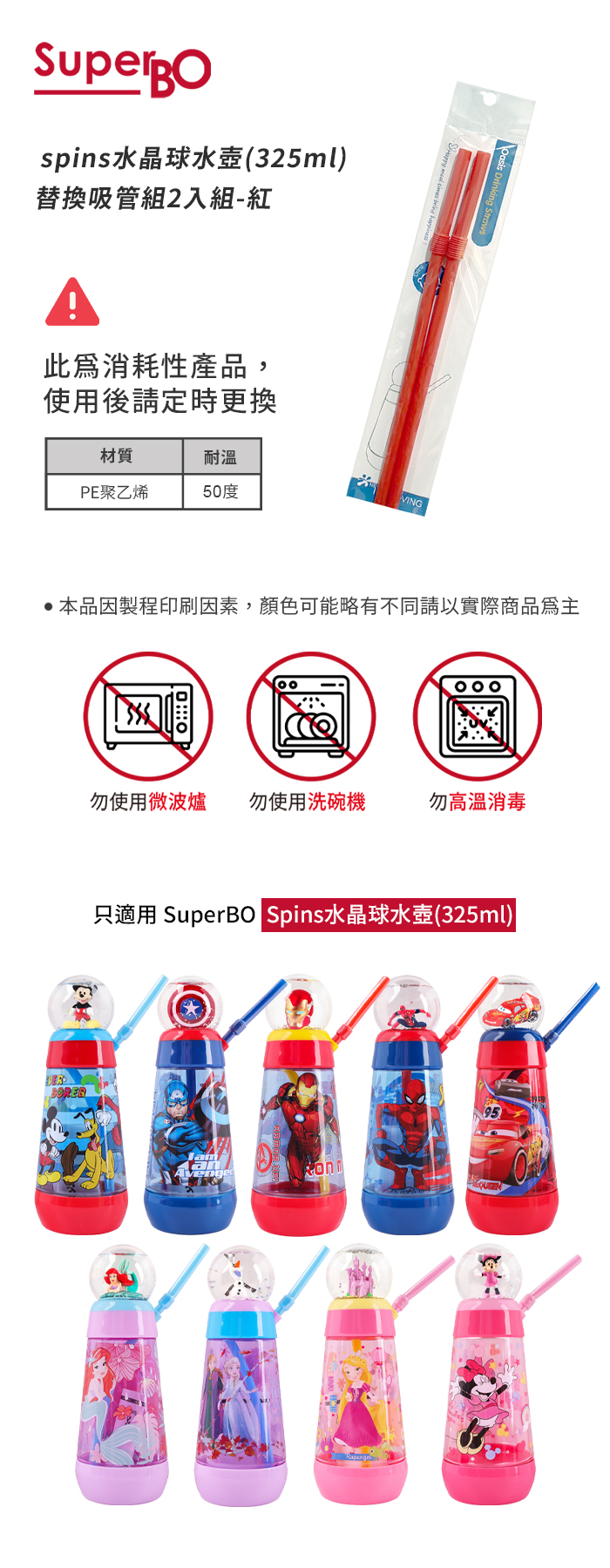 SuperBO 水晶球水壺325ml 替換吸管2入組 三色