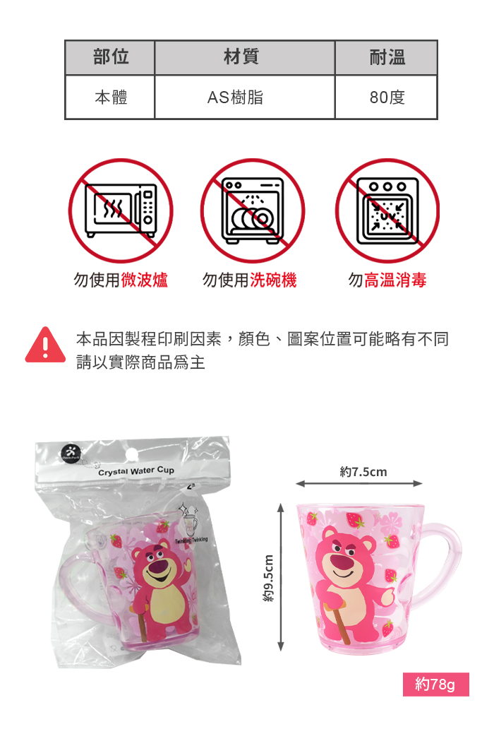 ●請勿高溫消毒,勿使用洗碗機、微波爐及紫外線消毒鍋,可能會導致產品變形或圖案剝落。