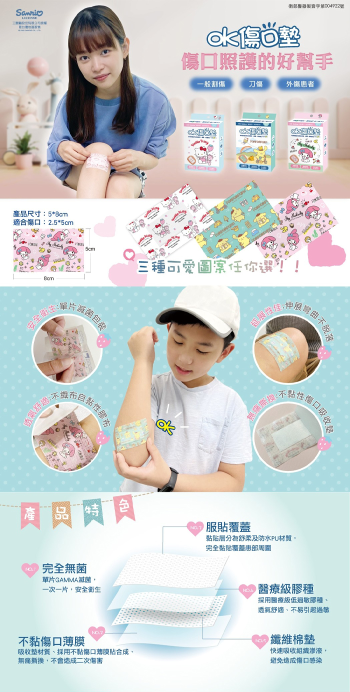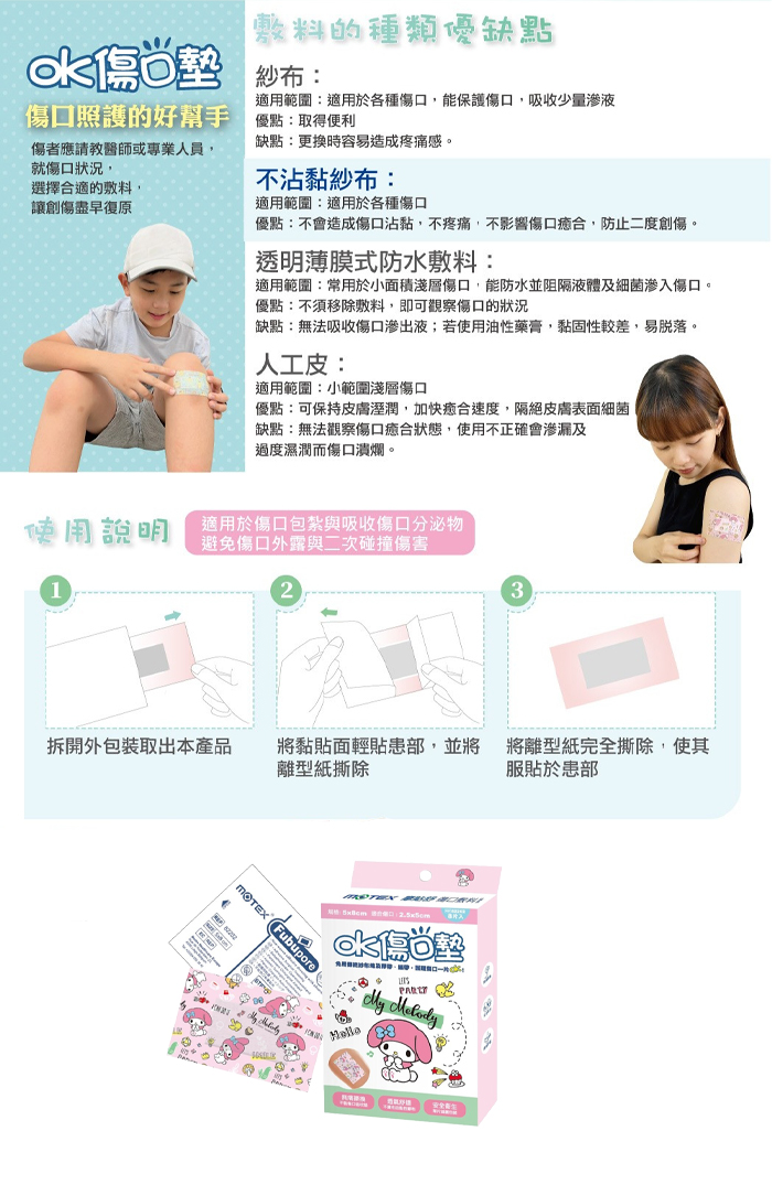 材質:舒柔、針紮棉、不黏傷口薄膜