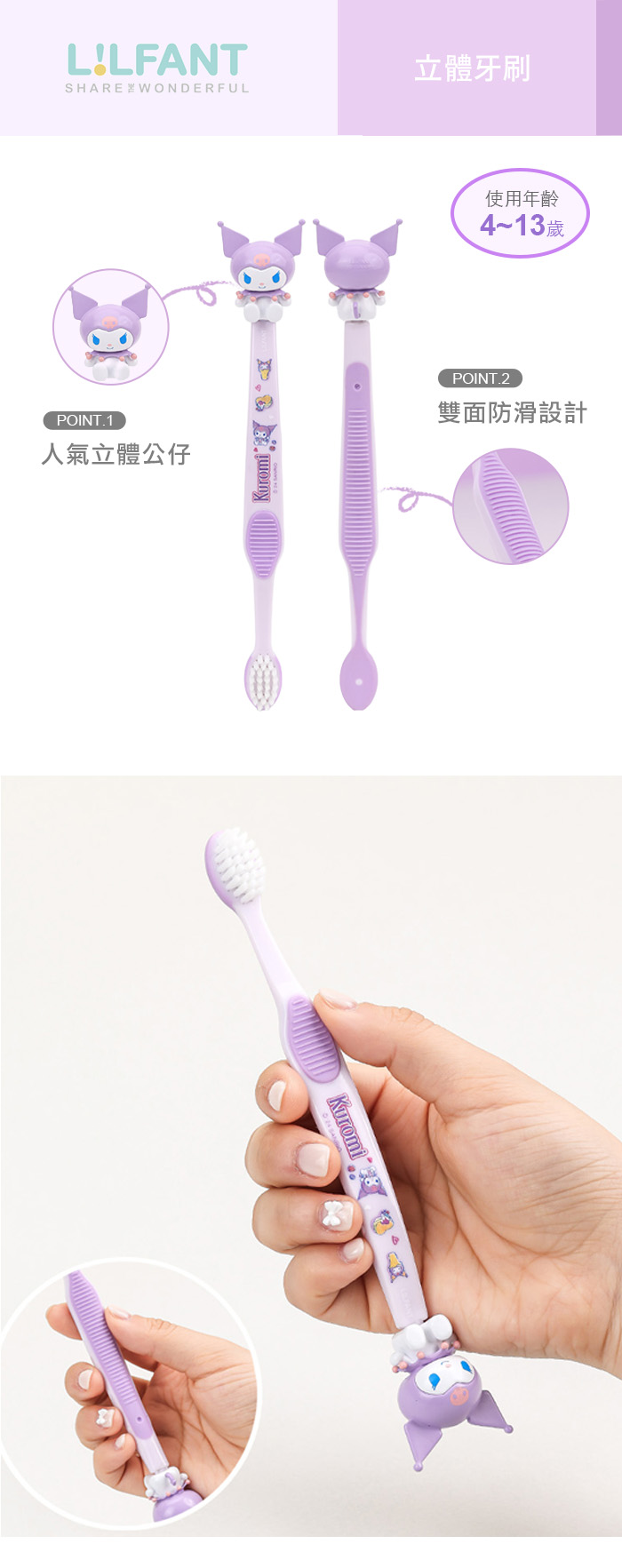 ◆適合兒童4-13歲使用的細軟刷毛